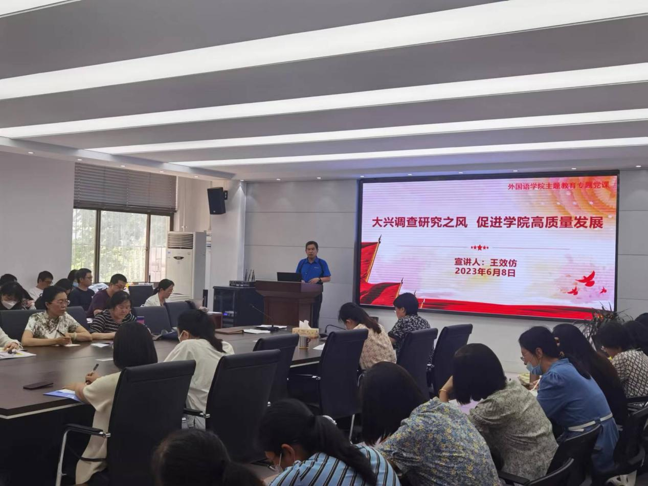 为深入学习贯彻习近平新时代中国特色社会主义思想,扎实做好主题教育和调查研究工作,6月8日,beat365亚洲体育官方网站于文经楼C220会议室开展“大兴调查研究之风 促进公司高质量发展”主题教育专题党课,公司党委书记王效仿主讲,公司全体教职工参会。