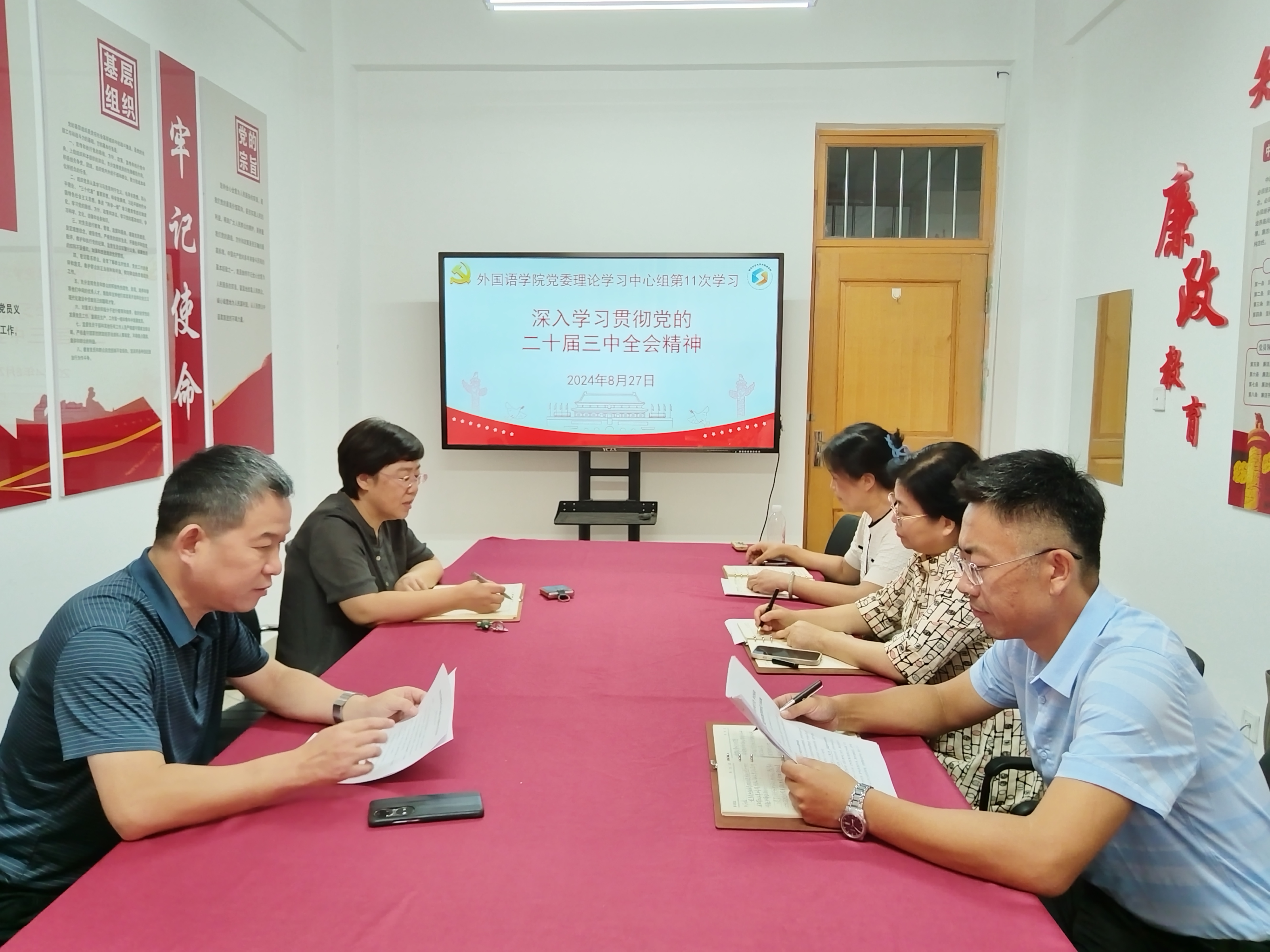 8月27日,beat365亚洲体育官方网站于文经楼C206组织开展党委理论学习中心组集体学习,专题学习党的二十届三中全会精神。会议由公司党委书记王效仿主持,公司党委班子成员参加。