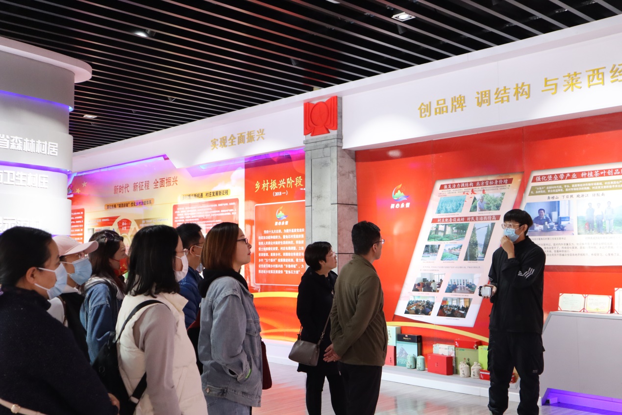 在鳌角石村,党员们首先来到省内首家村级“不忘初心牢记使命”党史馆进行参观。通过讲解员地介绍并结合馆内陈列的历史文物,大家详细地了解了鳌角石村五任党支部带领鳌角石村从农业学大寨、兴办副业、莱西经验,到乡村振兴的发展历程。为实现党建引领助推乡村振兴,鳌角石村成立村庄党总支,新建3000余平米党群服务中心,强化党组织核心领导作用,并围绕“心有所栖、业有所成、居有所安、境有所美、老有所养、幼有所教”六个方面,全方位打造了新时期乡村振兴的典范。