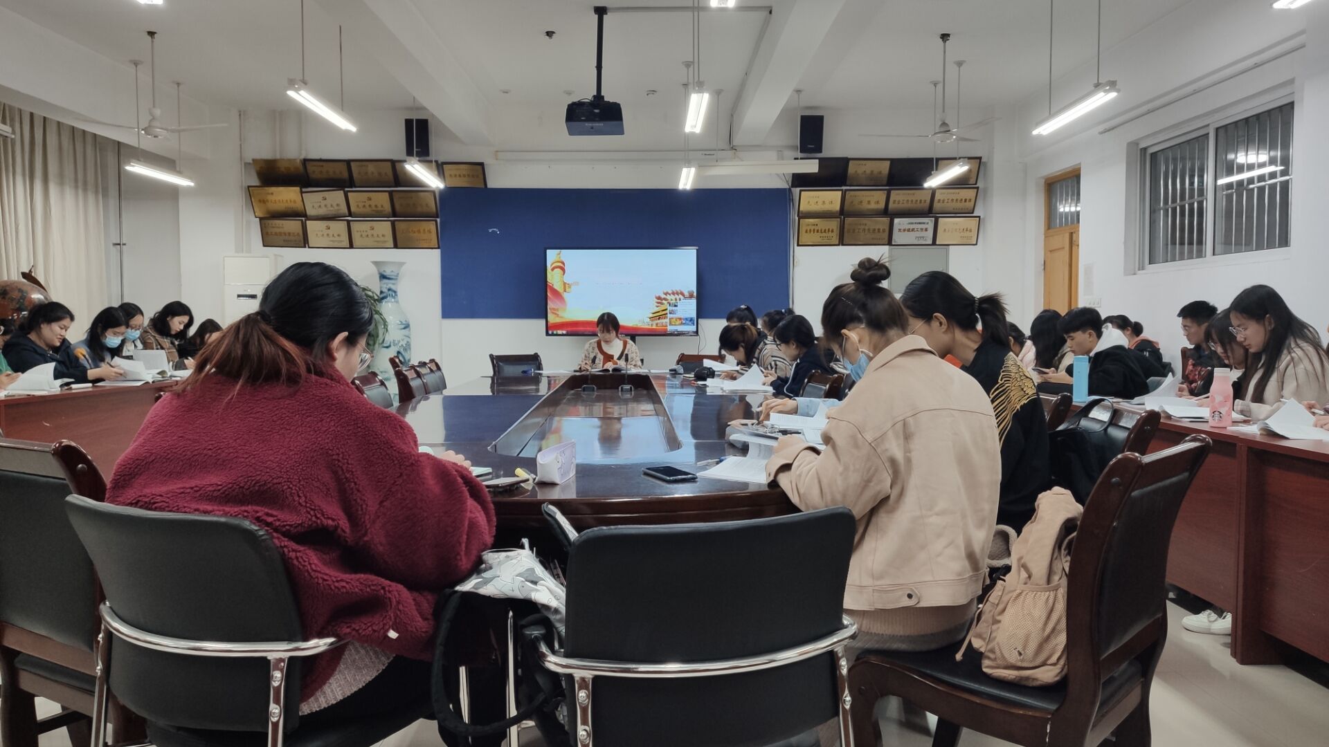 为弘扬共产主义青年团优秀团员精神风貌,学习优秀共青团员精神,10月12日,beat365亚洲体育官方网站组织2019级、2020级各班团员代表于文经楼会议室开展团课学习活动。