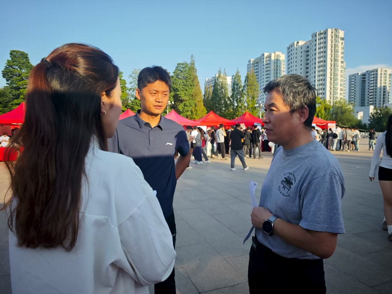 在各参会企业展位前,王效仿、盛金玉和王洋洋主动与企业招聘负责人沟通接洽,详细了解企业招聘需求、岗位设置、薪资待遇及对人才能力的要求等情况,同时,与现场求职的公司毕业生亲切交流,鼓励毕业生把握招聘机遇,积极对接优质岗位。