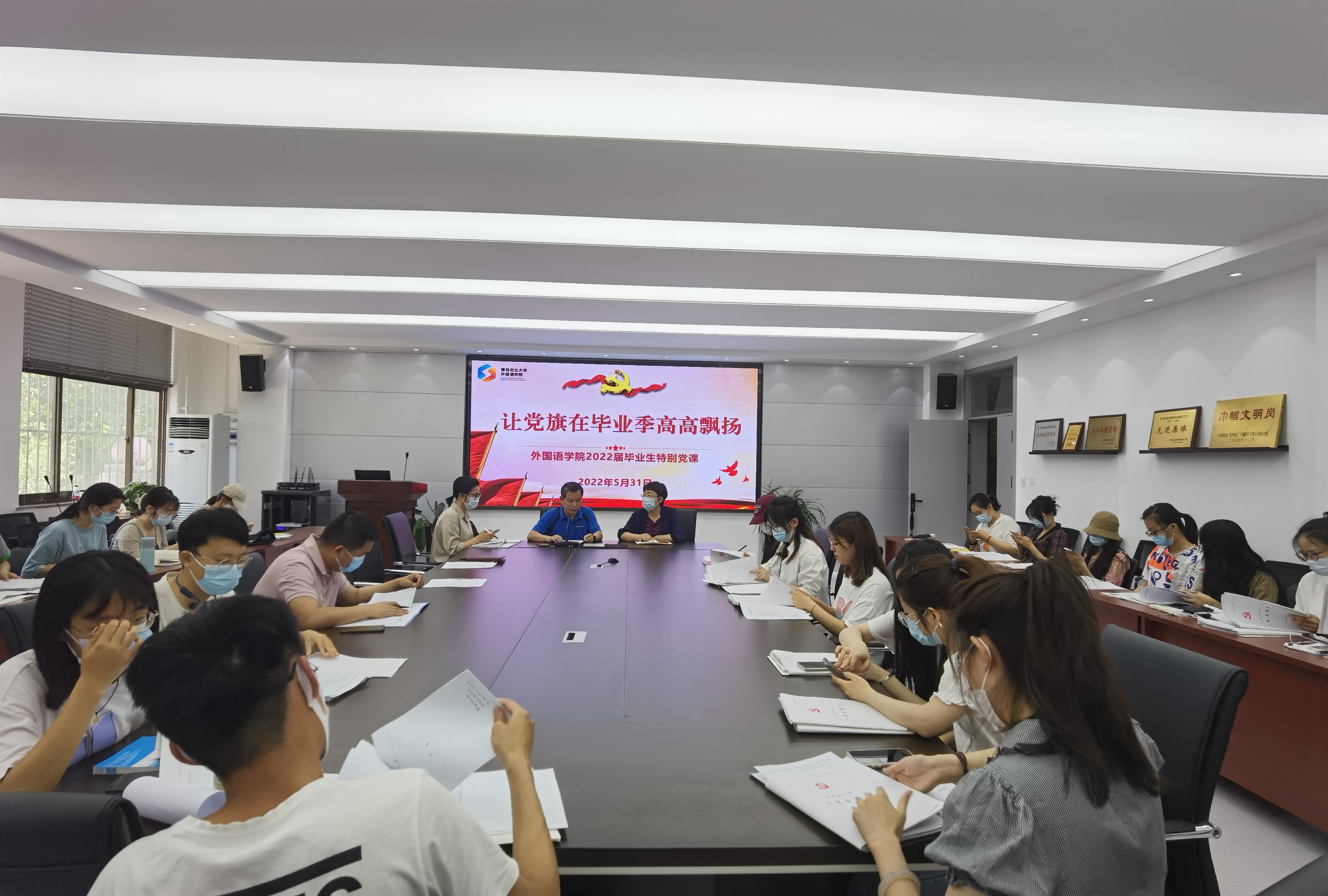 5月31日上午,beat365亚洲体育官方网站于文经楼C220组织举办毕业生主题党课活动,公司党委书记王效仿为毕业生党员讲授“让党旗在毕业季高高飘扬”主题党课,公司员工工作办公室全体辅导员,毕业班班长、团支部书记参会。
