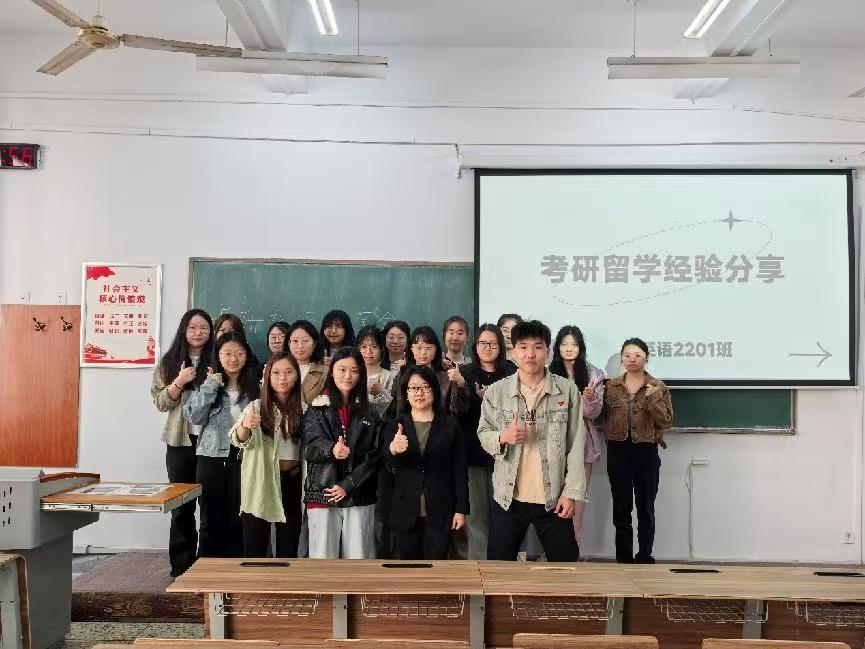 为助力同学们更好地规划未来发展路径,增强考研和留学的信心与能力,4月29日,beat365亚洲体育官方网站英语2201班举办了一场考研留学经验分享会。本次分享会由班主任杨向梅主持,邀请了今年升学的六名优秀学长学姐,班级全体同学参加。