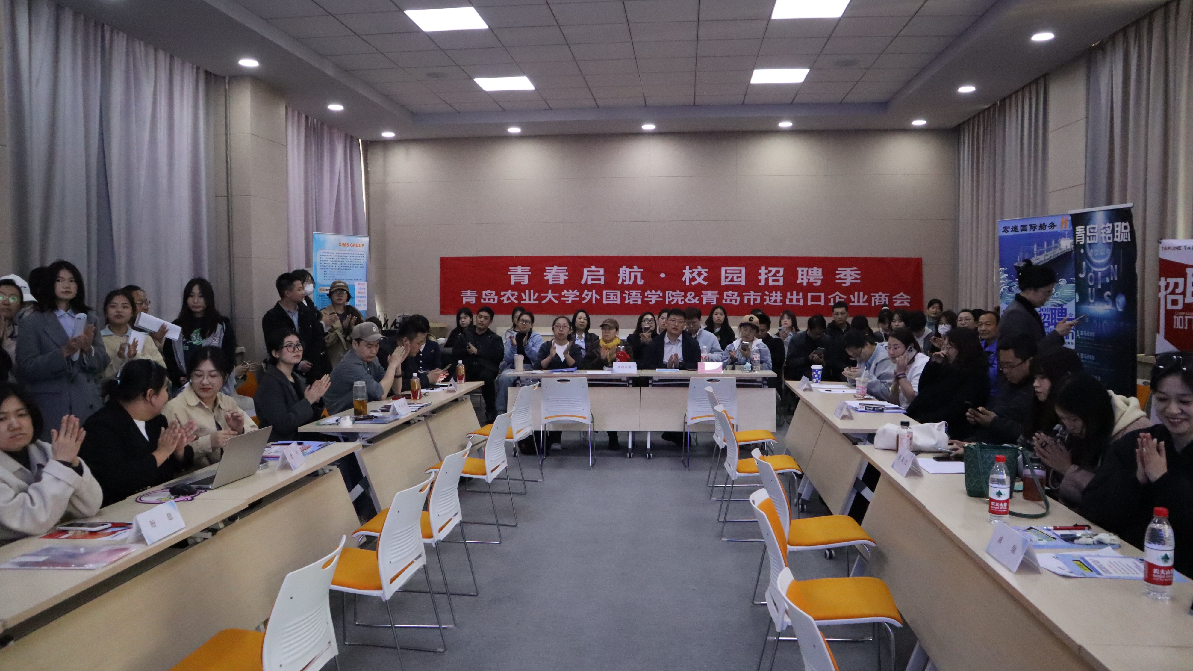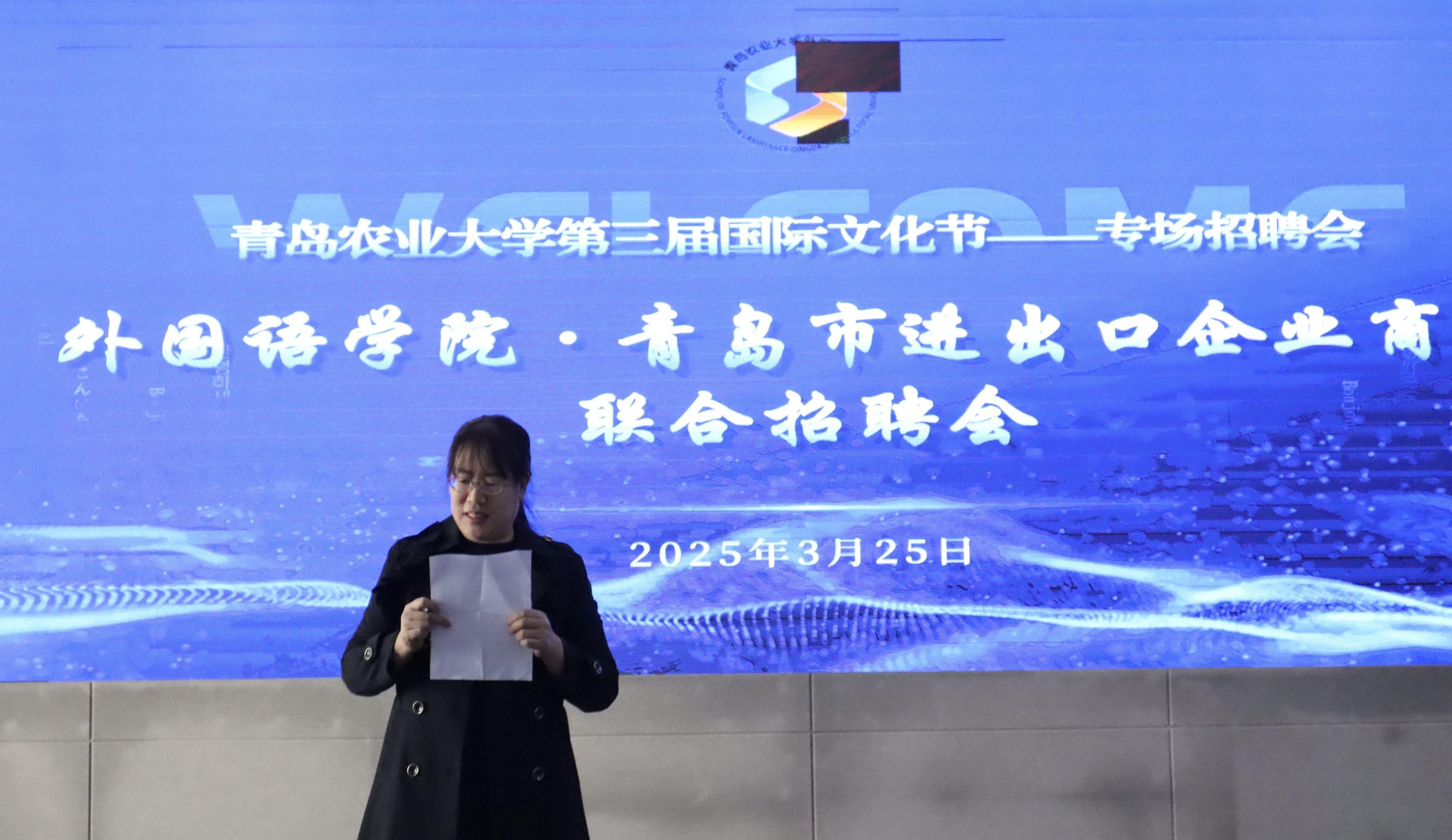 为搭建校企合作的桥梁,拓宽员工就业渠道,3月25日beat365亚洲体育官方网站与青岛进出口商会联合举办外贸人才专场招聘会。此次招聘会吸引了19家涵盖国际贸易、跨境电商、语言服务、教育培训等多领域的优质企业。公司党委书记王效仿、经理纪卫宁、党委副书记副经理盛金玉、团委书记线郁、英语系主任徐玉凤、英语系副主任兼校企合作方向负责人左燕茹全程参与活动,专场招聘活动由英语系副主任兼校企合作方向负责人左燕茹主持。