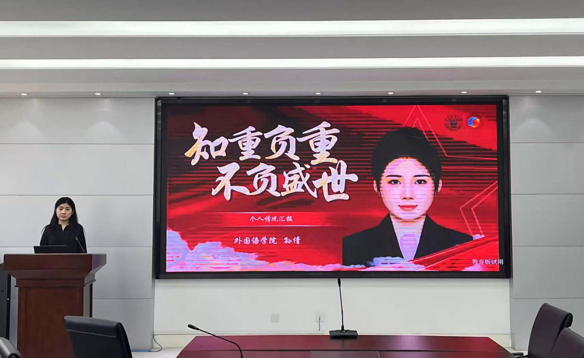 孙倩曾任院员工会秘书处部长,现任日语2101班班长,现已选调生成功上岸。分享会上,她以自身经历为切入点,围绕不同层面进行经验分享。在能力素养提升方面,她建议同学们积极参与员工工作、投身社会实践,在实践中不断锻炼沟通协调与组织管理能力;在选调生流程解析方面,她详细解读了选调生的报考条件、招录流程,并结合自身面试、笔试的实战经验,分享了备考技巧与心态调整方法,为有意报考选调生的同学提供了极具参考价值的建议。
