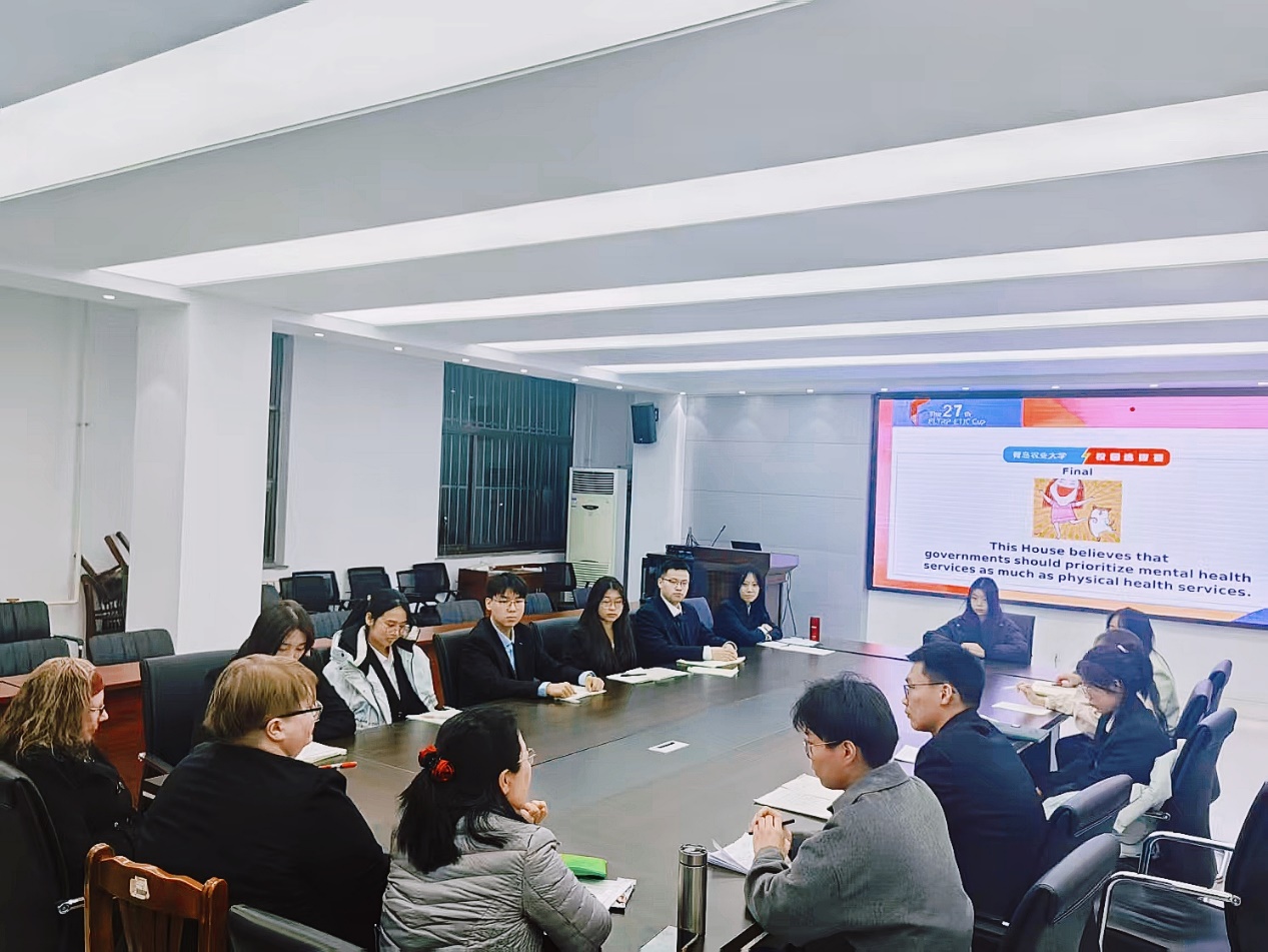 复赛阶段,各支队伍围绕当代社会热点议题展开激烈辩论。辩手们立足全球视野,巧妙运用逻辑推理与扎实的英语表达能力,展现了敏锐的洞察力和国际化思维。评委老师们针对辩手们的立论架构、语言组织与团队配合提出了宝贵建议,帮助选手们进一步完善辩论技巧。