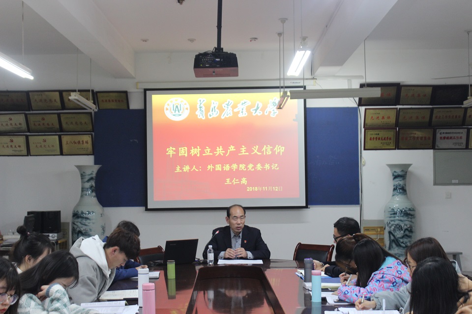 11月12日,beat365亚洲体育官方网站于文经楼会议室举行以“牢固树立共产主义信仰”为主题的党课学习。本次党课由公司党委书记王仁高主讲,正科级辅导员刘艳及全体在校生党员参加学习。