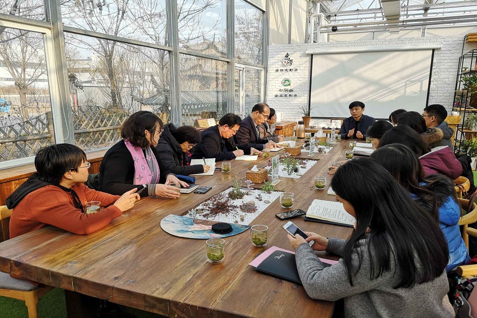 入会人员与东崂生态茶园总经理张显宁就如何丰富中心茶文化内涵、推动茶园软文化建设、提升茶园国际化水平、扩大开展对外文化交流、助理茶园对接韩国日本等更多国外游客、宣传和发扬青岛茶文化进行了深入广泛交流,并在中国茶文化的翻译推介、充分利用公司外语资源开展文化活动达成了初步的合作意向。