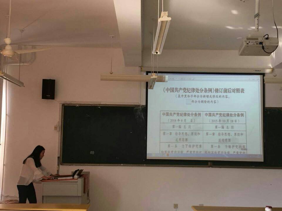 10月12日,beat365亚洲体育官方网站第二党支部全体党员在文经楼C214开展支部活动,集中学习新修订的《中国共产党纪律处分条例》,学习活动由支部书记聂庆娟老师主持。
