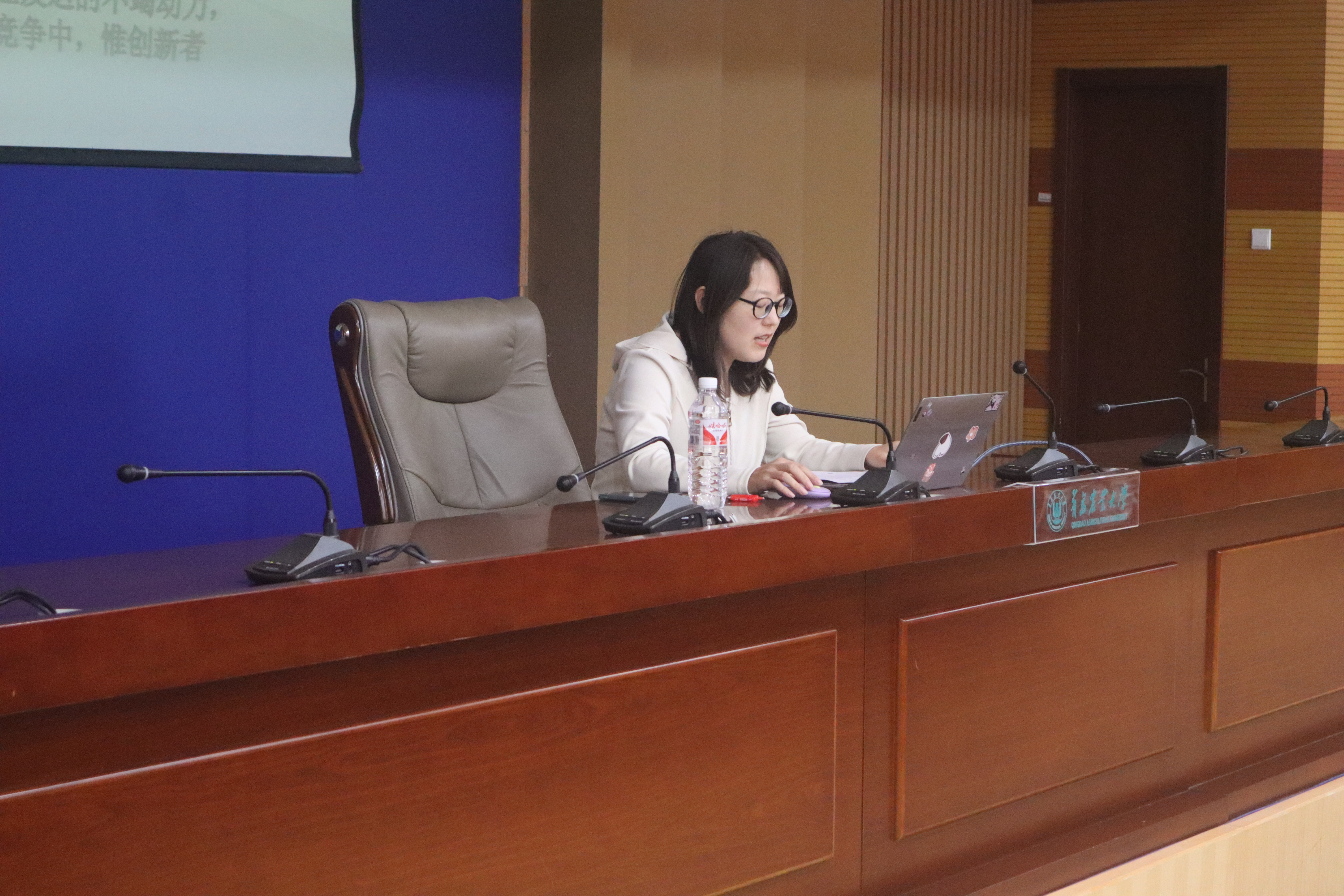 胡安琪以老员工创新创业和社会实践漫谈为主题,分析了创新创业教育现状、展示了往年竞赛成果,总结了以下几点启示:第一,创新创业项目要结合国家政策;第二,注意融会贯通,实现学科交叉;第三,积极阅读文献、掌握一手数据;第四,借助专业优势,突出语言优势。另外,胡安琪还对项目书的申报、结题报告的书写等作出了指导。