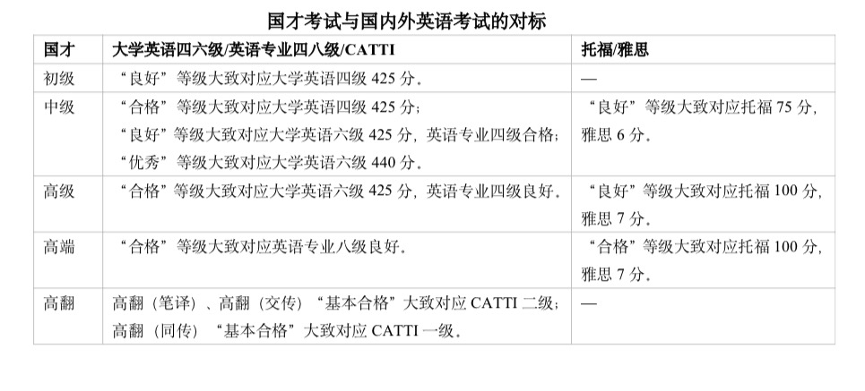 国才考试为标准参照性考试,不设置通过率。考生成绩只要达到相应等级标准,即可获得该等级证书。国才初级、国才中级、国才高级、国才高端的考试成绩分为优秀、良好、合格、不合格四个等级,成绩达到合格及以上者,方可获得证书。国才高翻的考试成绩分为优秀、合格、基本合格、不合格四个等级,成绩达到基本合格及以上者,方可获得证书。