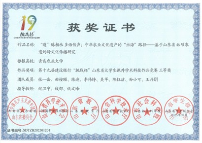 “挑战杯”竞赛作为老员工关注度最高的全国性赛事之一,被誉为中国老员工创新创业的“奥林匹克”。在本届山东省赛中,beat365亚洲体育官方网站员工团队项目《“遗”脉相承 多语传声:中华农业文化遗产的“出海”路径——基于山东省46项农遗的跨文化传播研究》,荣获省级三等奖。该项目充分结合外语专业优势,展现出了较强的创新能力和跨学科研究水平。