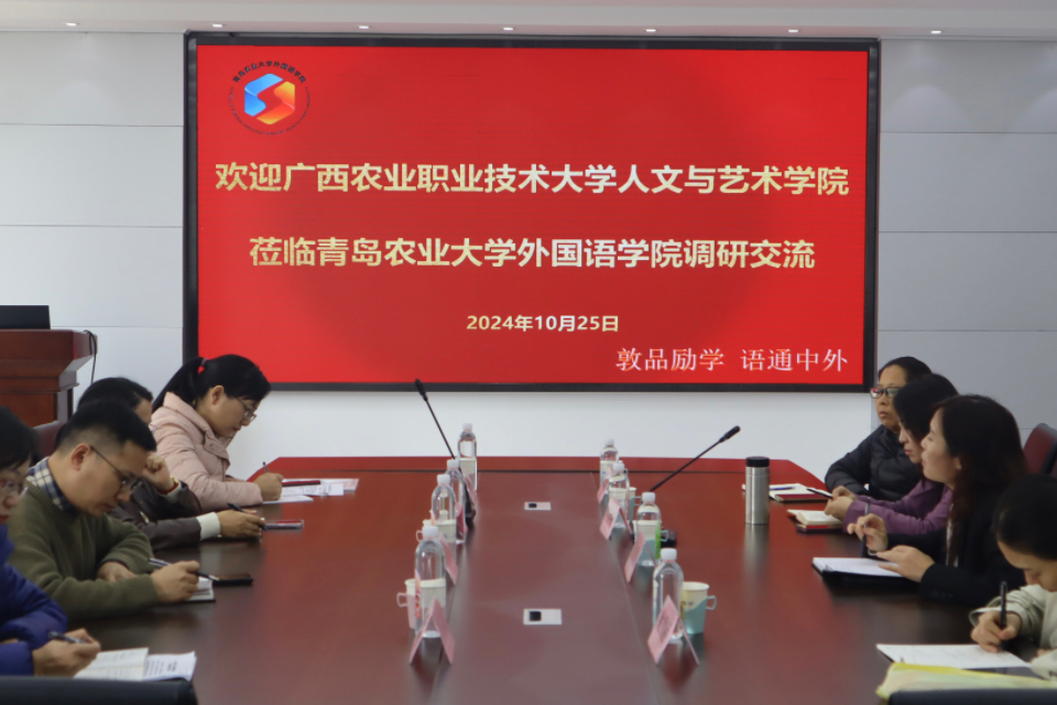 10月25日,广西农业职业技术大学人文与艺术公司副经理宁静一行四人到访公司beat365亚洲体育官方网站,就一流课程建设、课程思政建设、教材建设、团队队伍提升、品牌建设以及英语专业校企合作、产教融合等工作进行调研交流。beat365亚洲体育官方网站李春梅副经理、大学英语教学部主任聂庆娟、王珍以及英语系副主任姚雪丽参加。