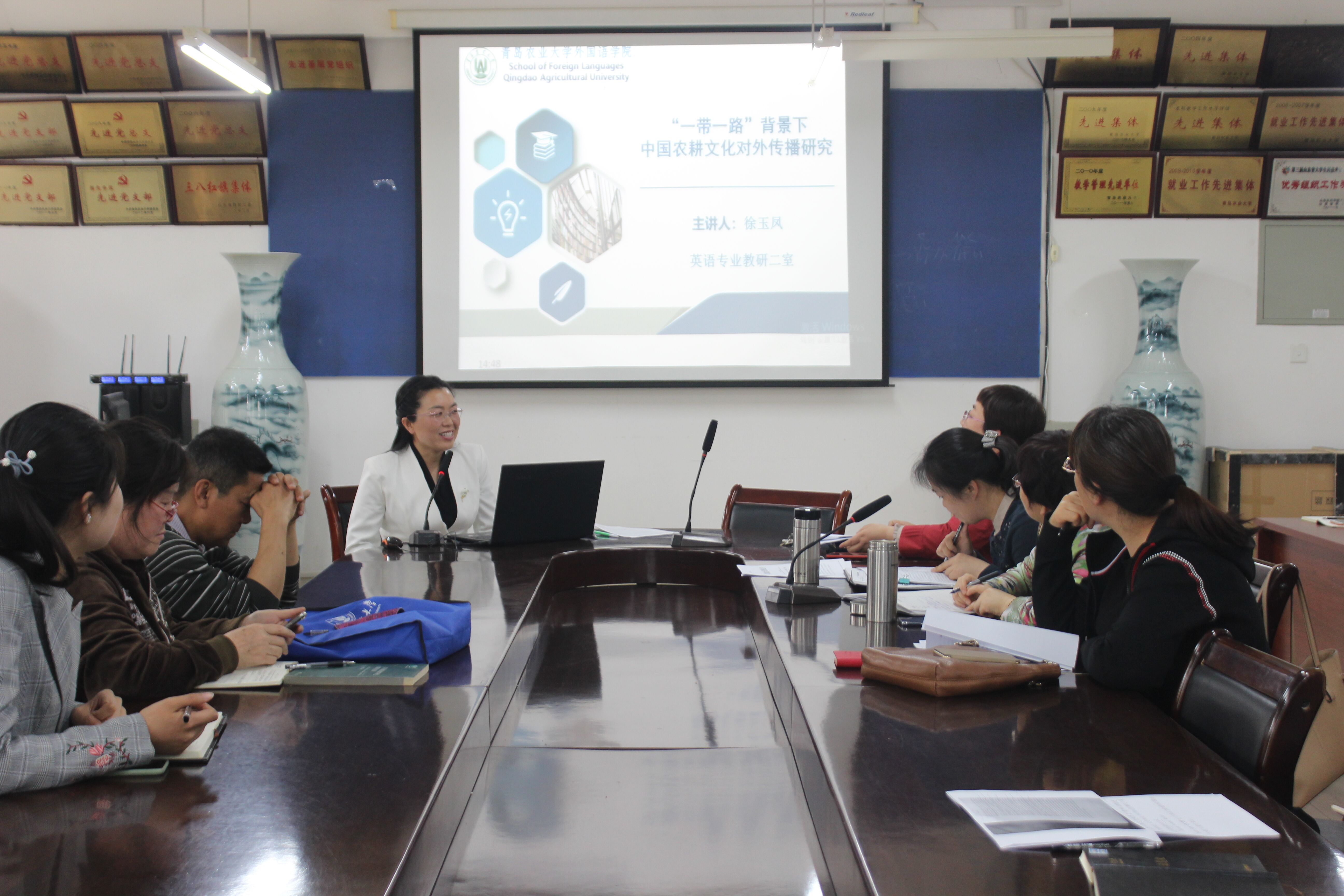 5月9日,beat365亚洲体育官方网站于文经楼会议室开展外语学术论坛第三讲。此次学术论坛由徐玉凤博士主讲,主讲题目为《“一带一路”背景下中国农耕文化对外传播研究》,公司全体领导、教职工与会,副经理高秀雪主持论坛。