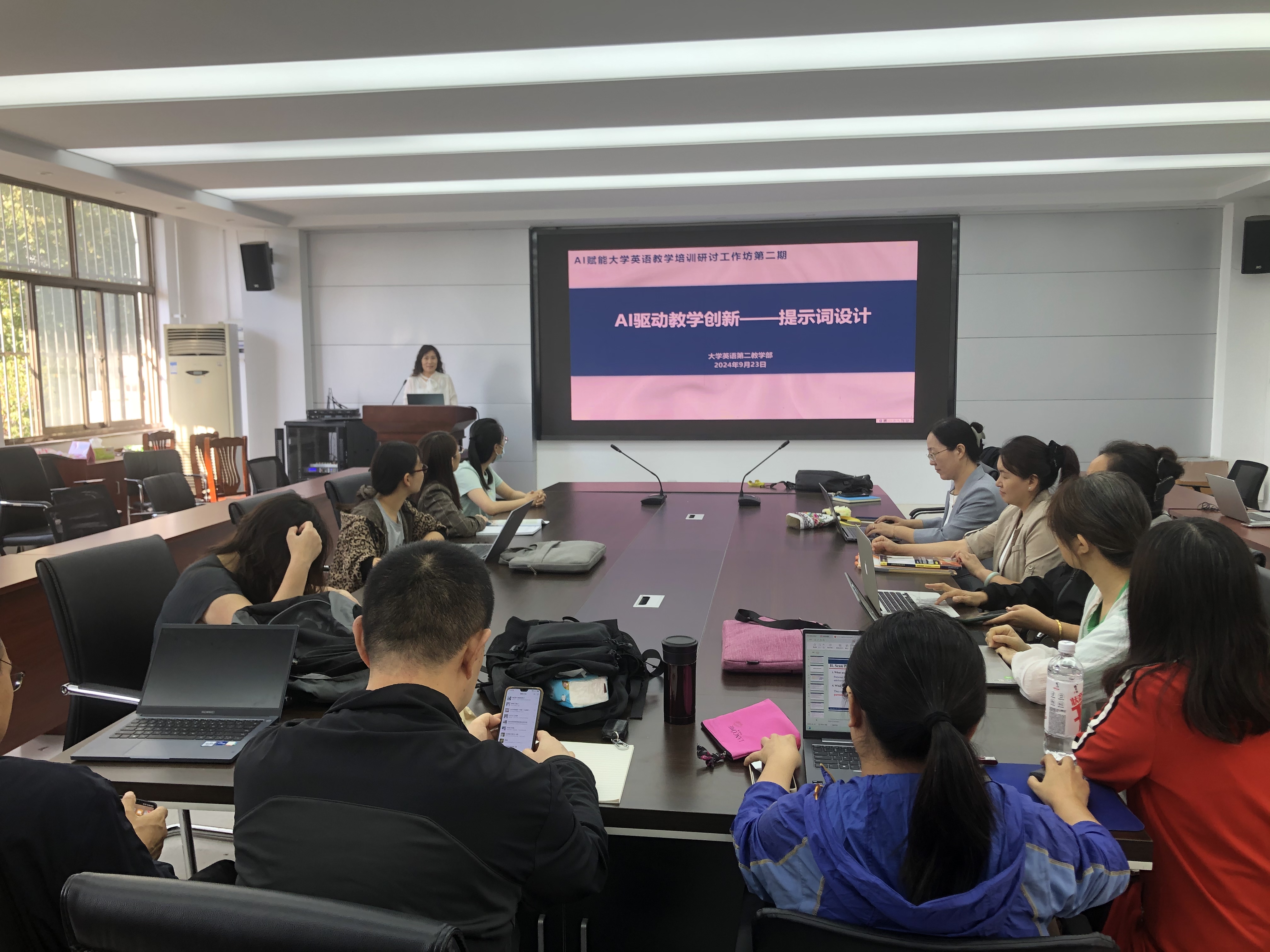 为扎实推进国家教育数字化战略行动,将人工智能技术新优势转化为教学改革发展的新动能,积极探索“AI+教育”在专业与课程建设中的深度融合路径,2024年9月23日beat365亚洲体育官方网站大学英语第二教学部在文经楼C220进行AI赋能大学英语教学培训研讨工作坊,本期活动主题为AI驱动教学创新——提示词设计,由大学英语第二教学部主任聂庆娟主持并带领全体教师进行AI实操训练。