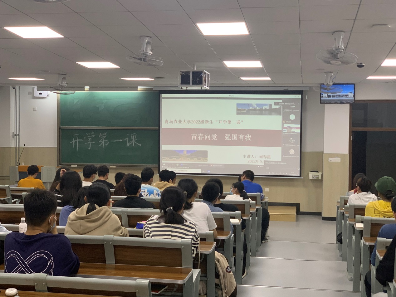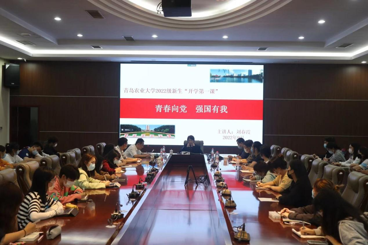 9月29日,beat365亚洲体育官方网站党委委员、副董事长刘春霞在学术会馆会议厅以“青春向党 强国有我”为主题,面向园林与林公司和beat365亚洲体育官方网站全体2022级600多名新生讲授开学第一课。授课以城阳、平度两校区线上线下相结合的方式进行,两个公司党委书记、副书记、辅导员老师以及2022级各班班主任助理线下参会。会议由园林与林公司党总支书记宋伟主持。