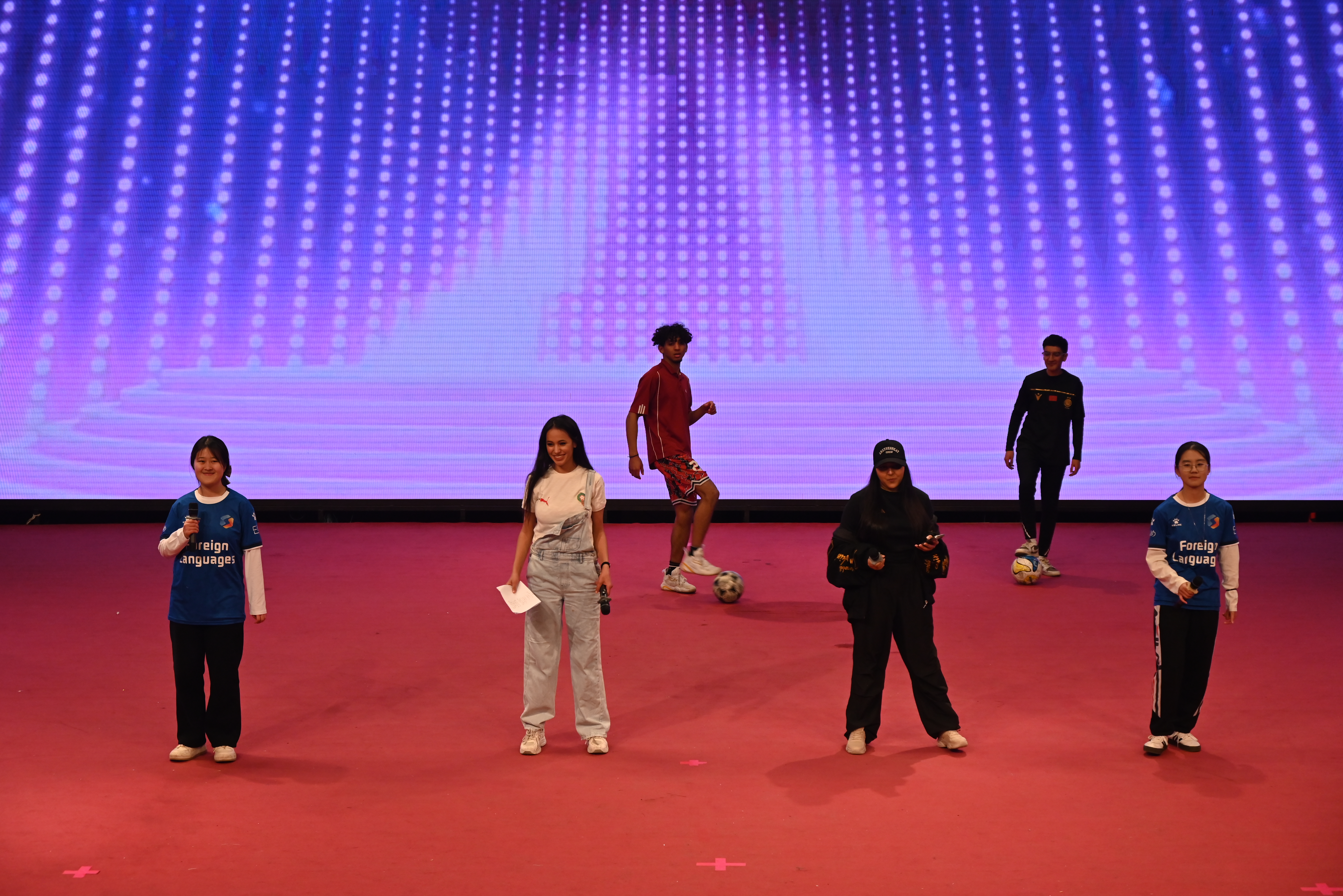 歌曲《映山红》、民乐合奏《心向朝阳》,在音符流动中,带领在场师生回顾了波澜壮阔的历史,感受了中华文化的博大精深。舞蹈《Drama》以舞台为画布,舞步为画笔,伴随着律动的旋律,共同绘出一副充满戏剧氛围的画面。