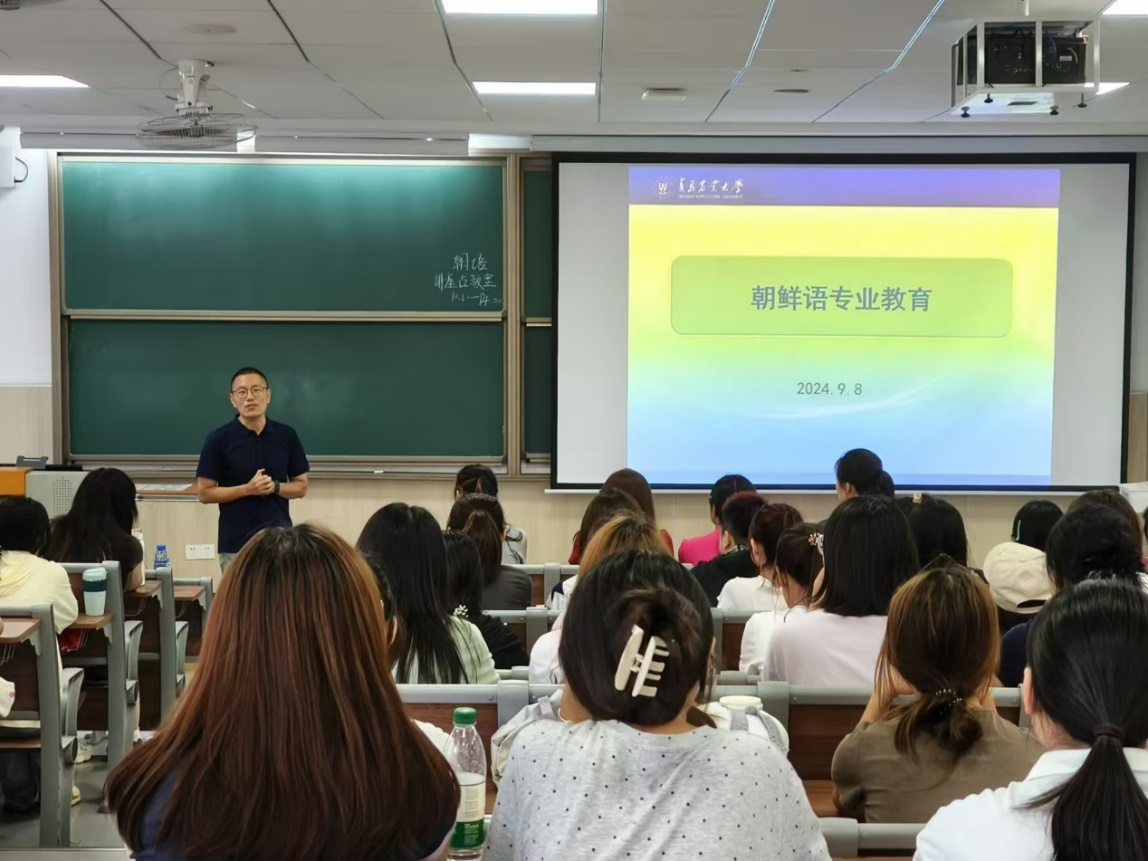 为帮助2024级新生尽快适应大学学习生活,引导员工致力专业学习,9月8日,beat365亚洲体育官方网站于平度校区开展2024级新生专业教育讲座和第一次主题班会。英语系主任徐玉凤、朝鲜语系主任李天择、日语系主任万礼担任专业讲座主讲,2024级各班新生班主任及班主任助理参加主题班会。