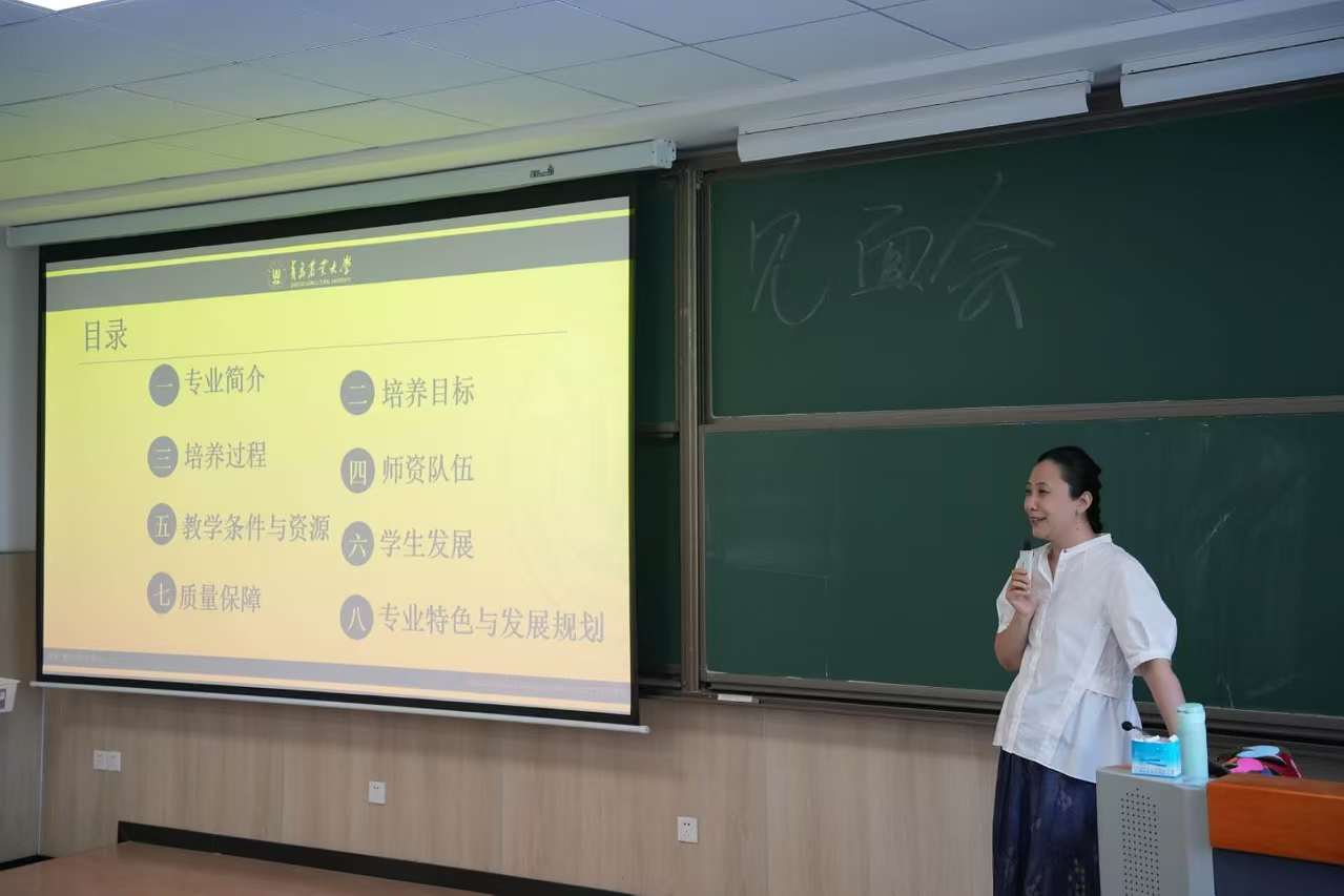万礼老师从专业介绍、培养目标、教学流程、团队力量、学习条件和资源、员工发展、质量保障及专业特色与未来规划八个维度对专业进行了全面讲解。她建议同学们努力磨练基础技能,广泛阅读,正确认识自我并不断追求完善,同时强调了时间管理和自我提升的重要性,以及在团队中促进个人成长的必要性。