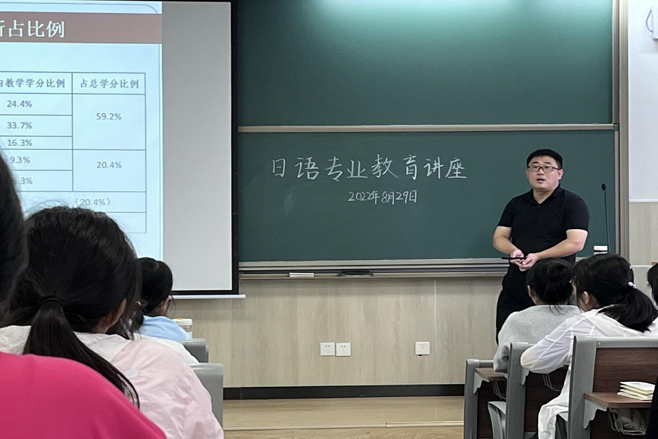 为帮助2022级员工尽快适应大学学习生活,引导员工致力专业学习,8月29日上午,beat365亚洲体育官方网站于平度校区组织各系分别召开2022级新生入学教育专业讲座,英语系主任徐玉凤、朝鲜语系主任李天择、英语系副主任兼校企合作方向负责人左燕茹、日语系副主任王健担任主讲。
