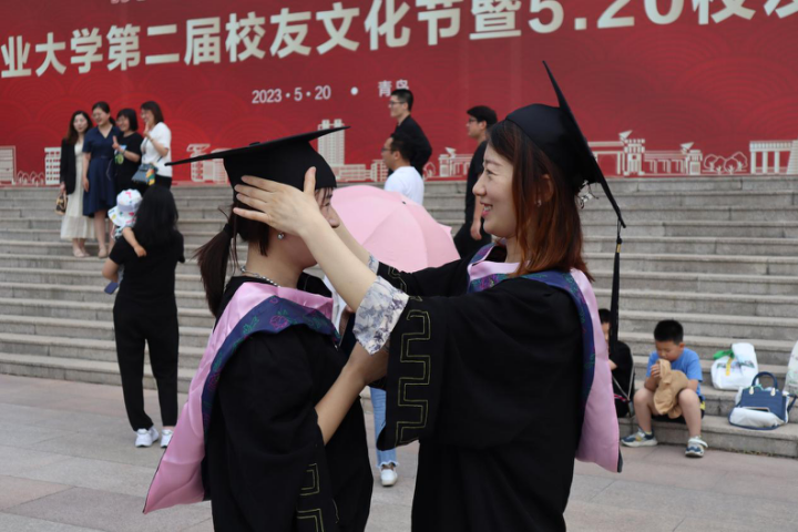 在虹子广场的签到中心,公司设置了“怀旧一瞬”拍照打卡活动,员工们领取了精美纪念礼包并重穿学士服,重温毕业时刻。