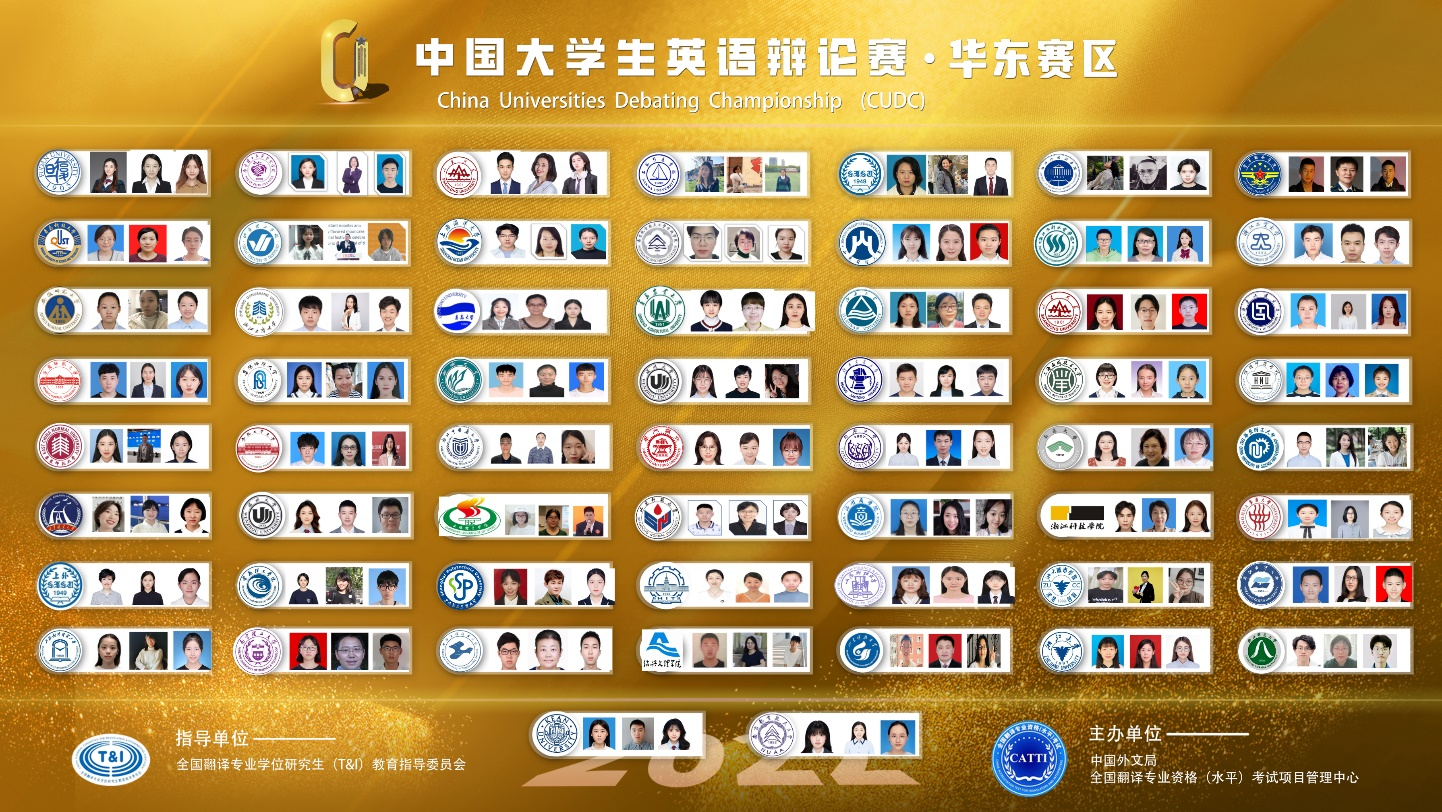 CUDC中国老员工英语辩论赛由中国外文局全国翻译专业资格(水平)考试项目管理中心主办。今年的华东赛区比赛覆盖了上海市、浙江省、江苏省、安徽省和山东省。华东区比赛共有60支队伍参加,包括复旦大学、上海外国语大学、上海交通大学、浙江大学、山东大学、华东师范大学、同济大学、华东理工大学、上海财经大学、青岛大学等高校。