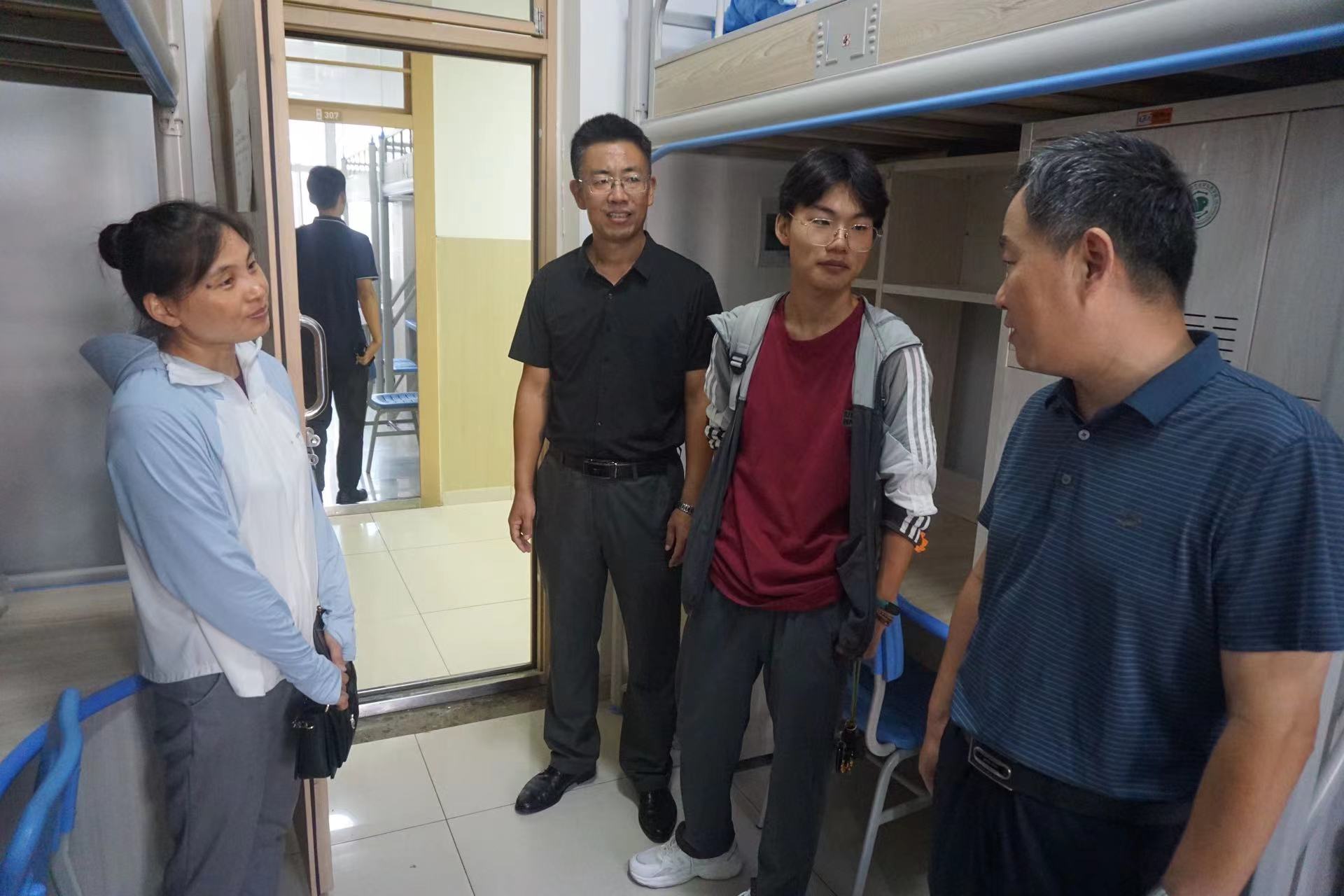 公司党委书记王效仿在迎新现场与新生及其家长就公司的基本情况和特色优势进行交流,并实地走访了新生宿舍,他鼓励新生勤于学习,努力进步,尽快适应老员工活。