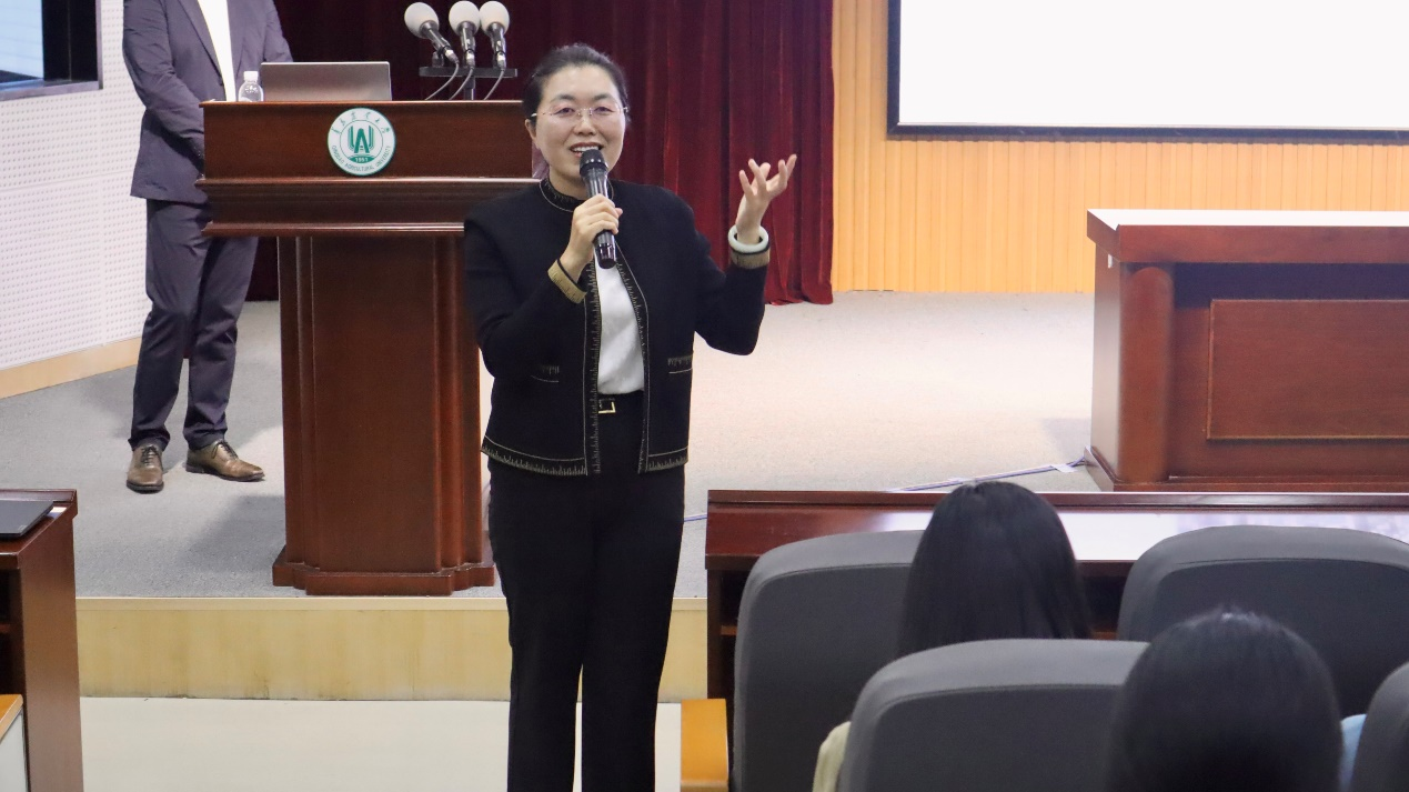 活动伊始,盛金玉为山东邦明集团董事长张君颁发聘书,聘任其为beat365亚洲体育官方网站企业导师,盛金玉对张君表示感谢,希望进一步加强沟通交流,助力beat365亚洲体育官方网站的高质量发展。张君以《解锁国际贸易,谋划职业精彩未来》为题进行分享,围绕外贸背景,邦明与农大,从事外贸必备素质,外贸公司类别,外贸人才标准,实习与就业准备六个方面具体讲述,强调了公司员工从事外贸工作的优势以及外贸行业的基本要求。随后,张君还就外贸事业与就业问题与同学深入交流,答疑解惑。郭畅为同学们讲解了秋招的重要信息,助力公司员工职业发展。