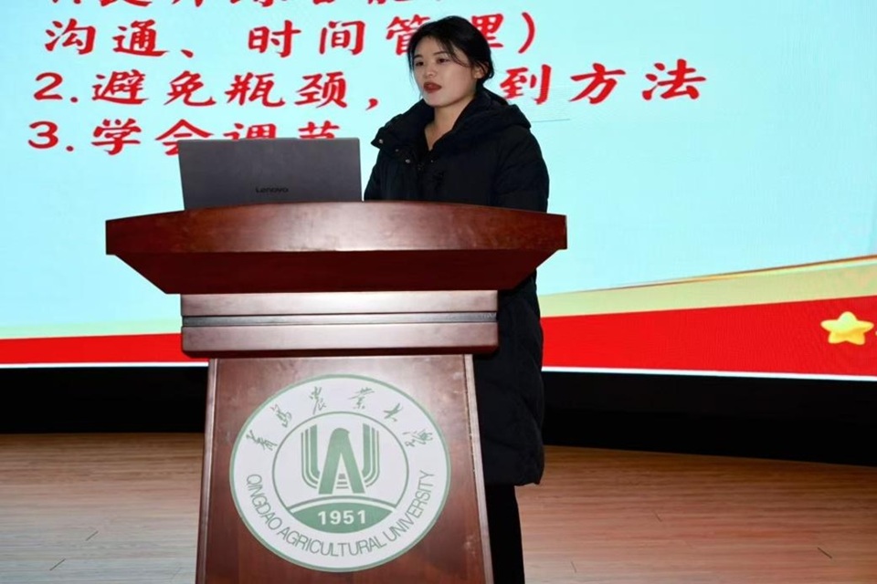 龚萧以“工作与学习的‘平衡术’”为主题,分享实用方法:一是运用四象限法则明确任务优先级,聚焦核心事务;二是拆解复杂任务、拒绝拖延,充分利用碎片化时间;三是掌握高效沟通技巧,学会合理取舍,在平衡中兼顾学业深耕与实践锤炼。