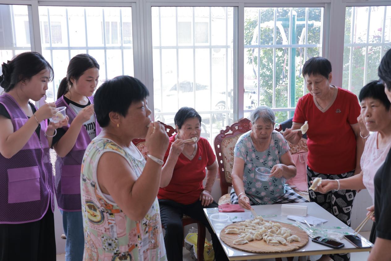 跟小朋友见过面后,实践团队筹备了一场温馨的包饺子活动。志愿者与老人们围坐一起,听老人们讲述关于二十四节气的故事,特别是立秋时的“贴秋膘”习俗。原妇女主任朱广香奶奶说:“在过去物质条件没有这么丰富的时候,夏天天气炎热,很多人会出现‘苦夏’的表现,食欲减弱,体重减轻,所以到了立秋天气渐凉的时候开始吃肉增加营养,为身体储备能量,便有了‘贴秋膘’的典故。”这让在场的每一个人都感受到了传统文化的魅力。热气腾腾的饺子出锅后,大家围坐品尝,那份满足感与幸福感溢于言表。
