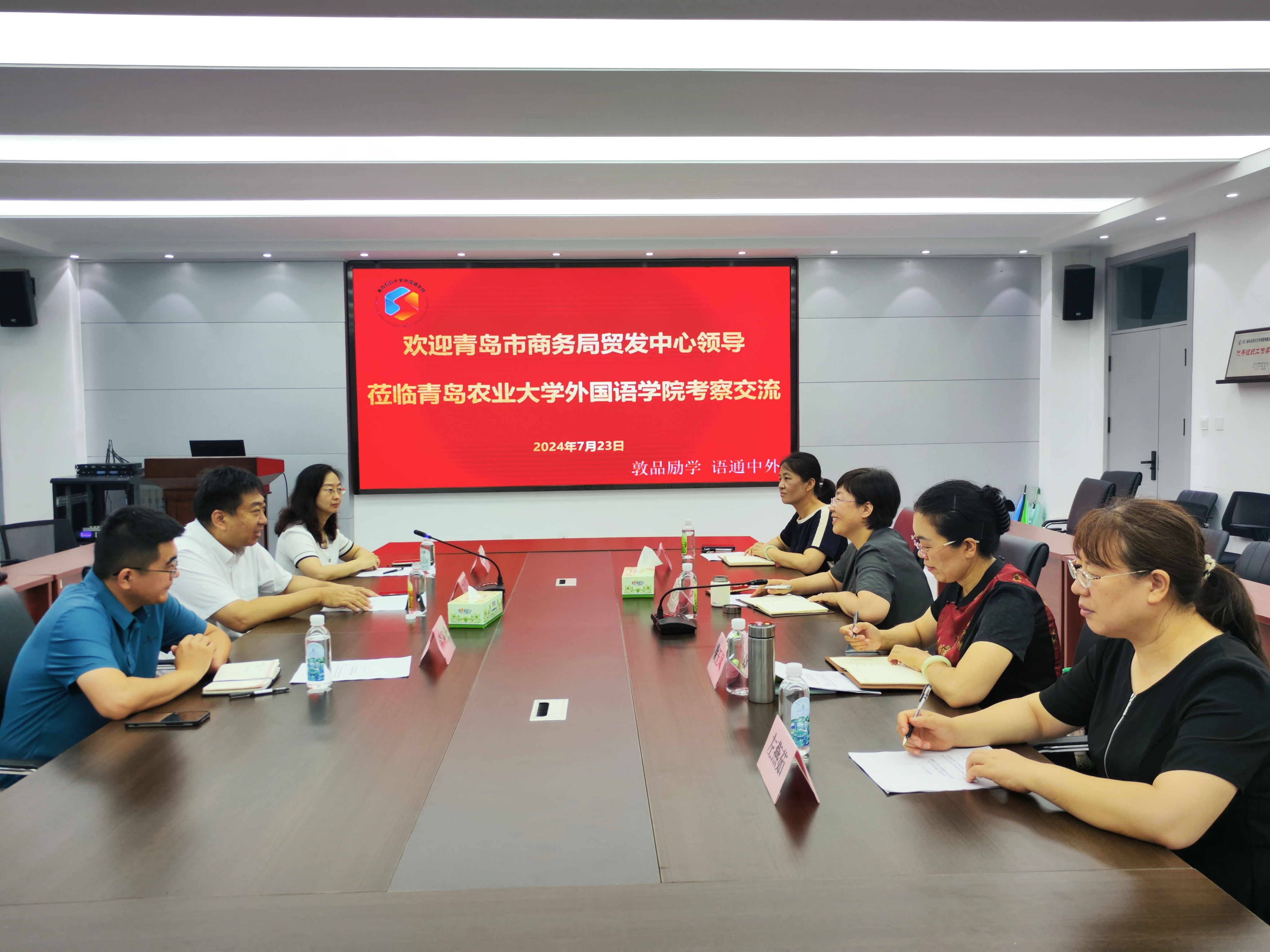 7月23日上午,青岛市商务局贸易发展服务中心副主任王大崑、跨境电商部部长崔媛、副部长陈科先到公司beat365亚洲体育官方网站考察交流。beat365亚洲体育官方网站经理纪卫宁、副经理李春梅、英语系主任徐玉凤和副主任左燕茹参加了座谈。