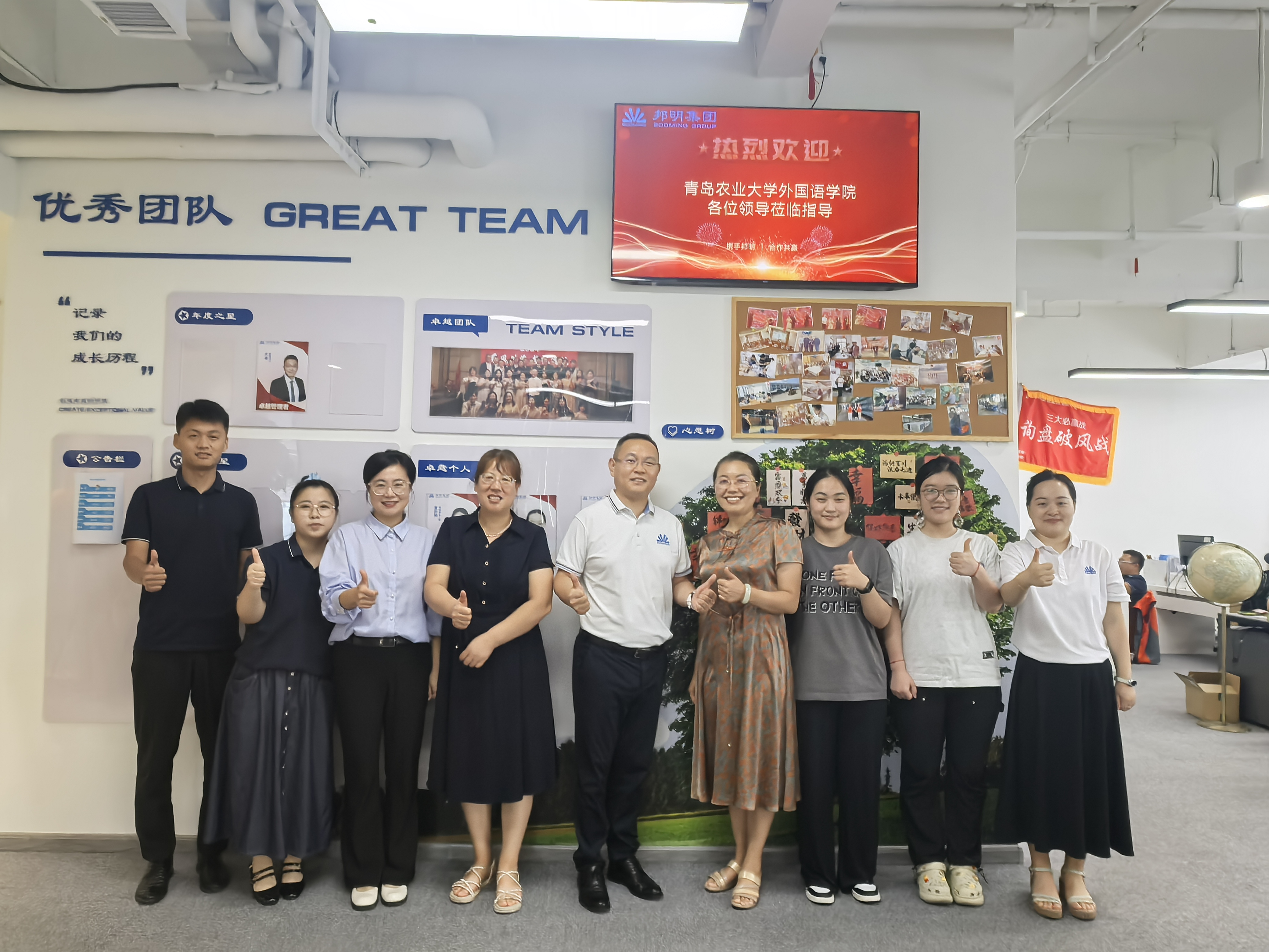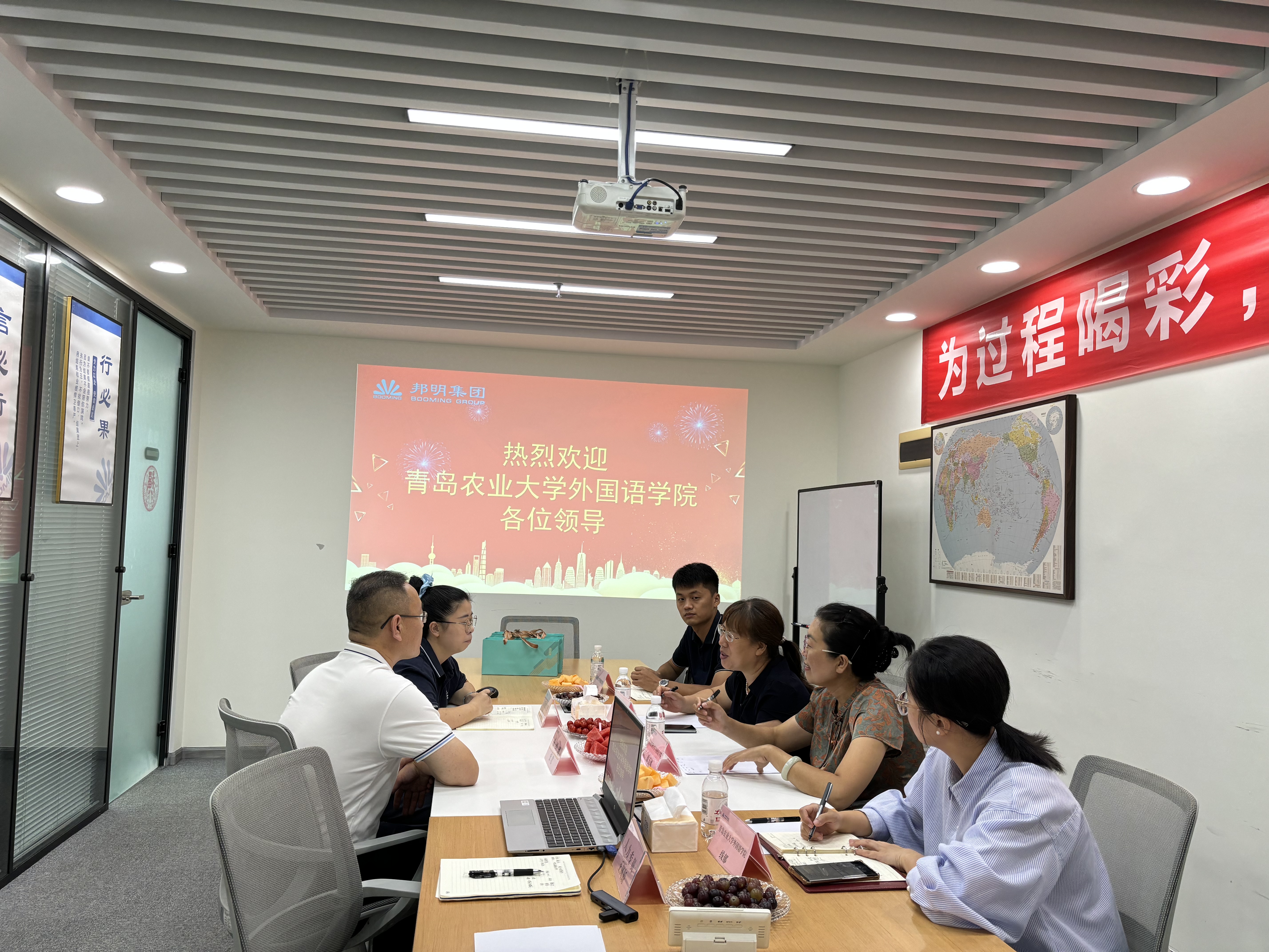8月29日上午,beat365亚洲体育官方网站英语系主任徐玉凤、副主任左燕茹、团委书记线郁和辅导员王洋洋一行前往员工企业山东邦明贸易集团有限公司,就员工实习实践、校企合作协同育人以及促进毕业生就业等开展深度交流,以进一步深化产教融合,提升外语专业人才培养质量,促进beat365亚洲体育官方网站毕业生高质量就业。邦明集团总经理张君、人力行政经理郭畅和人力专员王凤娇,以及已在公司就业的beat365亚洲体育官方网站员工代表参加了活动。