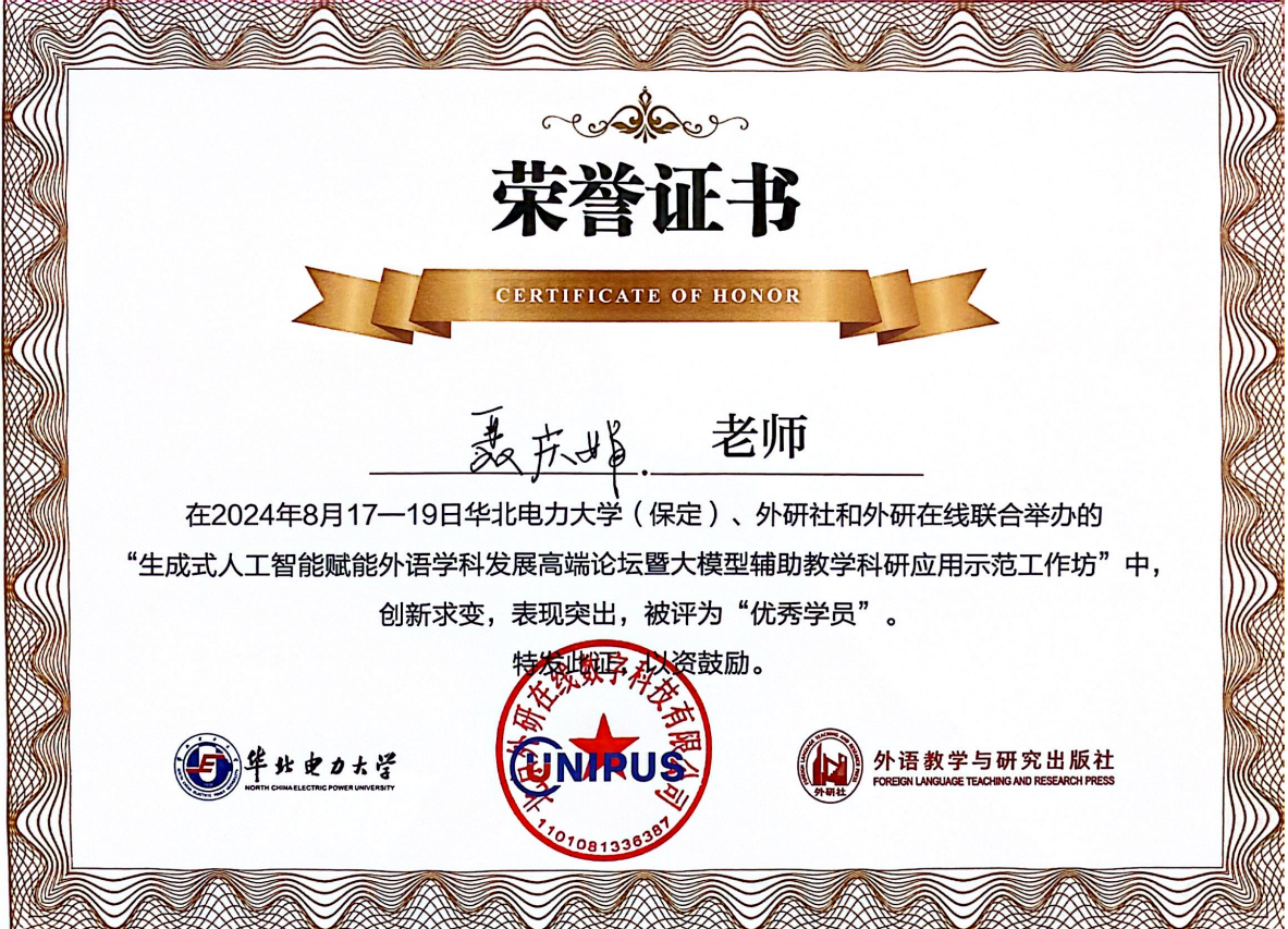 8月17日至19日,外研社主办的“生成式人工智能赋能外语学科发展高端论坛暨大模型辅助教学科研应用示范工作坊”在华北电力大学(保定)一校区举行,论坛汇聚了外语教育领域的知名学者和人工智能领域的权威专家。公司教师聂庆娟参加,与众多教育专家和外语教育一线教师共同探讨生成式人工智能在外语教育中的应用。