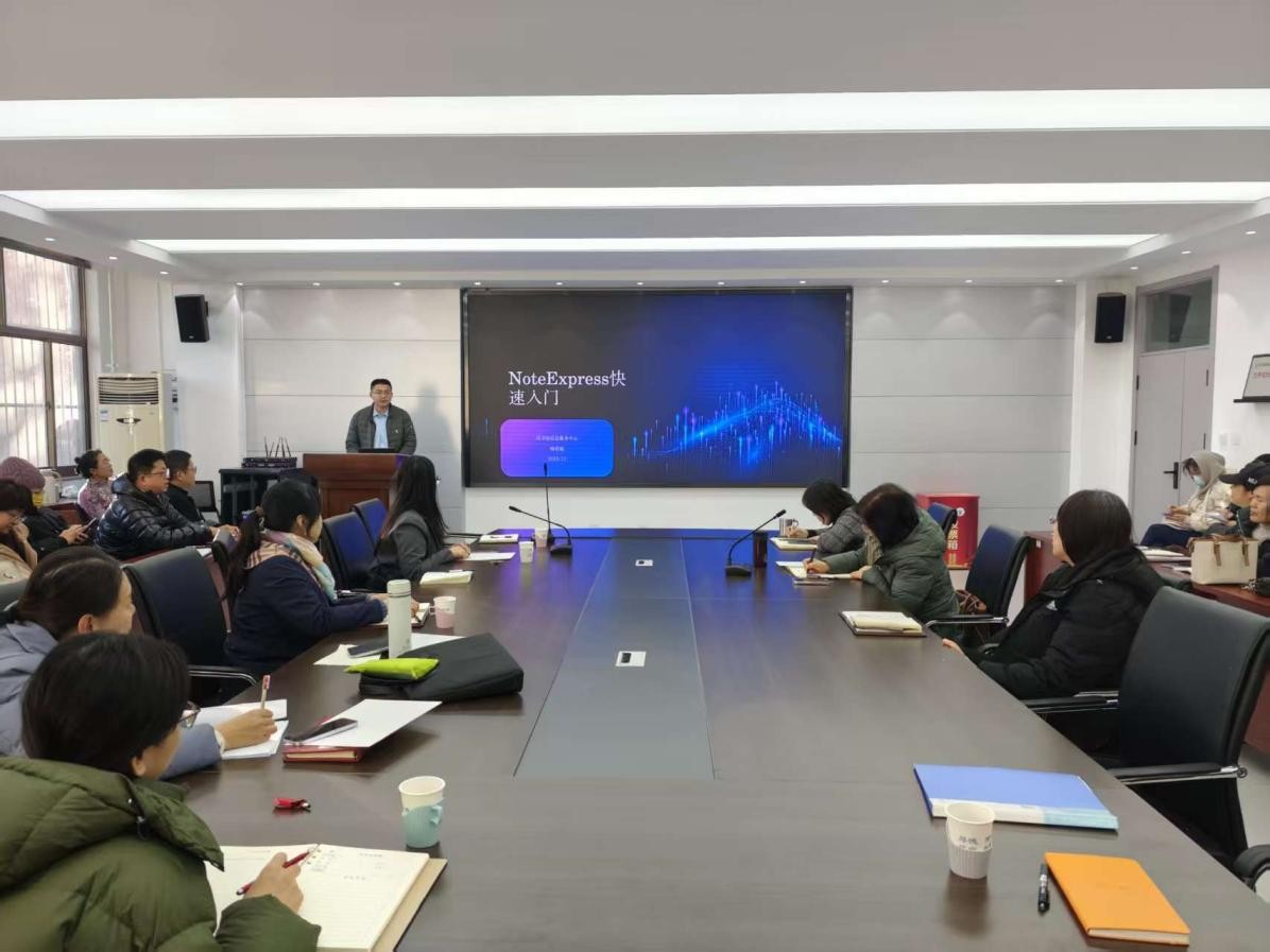 讲座现场气氛热烈,四位主讲人准备充分,讲解深入浅出,既有前沿理论的深度剖析,也不乏实践操作的细致指导。李扬聚焦AI在学术创新各环节的应用,对beat365亚洲体育官方网站的发文情况及趋势进行分析,从投稿选刊、科研选题角度对图书馆数据库进行了详细介绍,并对AI在科研选题中的核心价值进行了重点解读;杨若迪作了“NoteExpress快速入门”报告,从文献导入、文献阅览、参考文献自动引用三大方面对NoteExpress进行了全面介绍,有效帮助师生系统掌握文献管理工具的使用方法,提升科研效率与学术规范性;鲁华山以定性案例的形式,重新审视了中国英语学习者对英语作为全球语言的认知,其研究视角新颖,为外语教学中跨文化意识的培养提供了有益借鉴;丁树亭结合自身课程思政建设经验,详细阐述了农耕文化翻译课程如何融入思政元素,探索出一条将传统文化传播与价值引领相结合的创新路径,其做法具有较强的可操作性和推广意义。