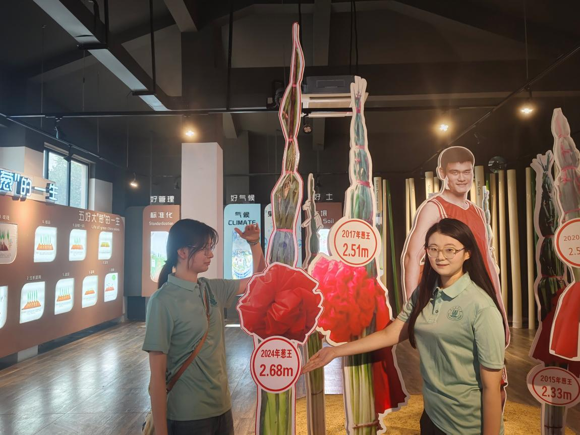 团队首站抵达章丘区绣惠街道办事处,街道办杨庆波向成员们详细介绍了章丘大葱悠久的种植历史、独特的品种优势以及在当地经济社会发展中的重要地位。随后,团队来到章丘大葱文化博物馆,与2024年2.68米高的“葱王”比身高,了解了章丘大葱“高、大、脆、甜”的特质及长势惊人、品质出众的原因。