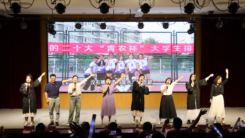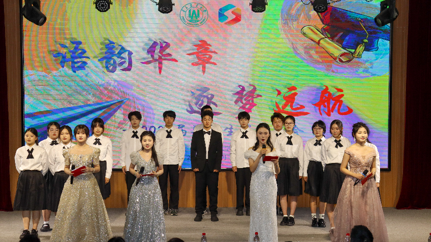 第三篇章“未来征途·心向远方”将晚会推向高潮。韩语歌曲《逐光而行》唱出了毕业生们勇敢追梦的决心;公司辅导员带来的惊喜节目《爱你》更是让现场掌声不断;2021级毕业班班主任老师及毕业生带来了歌曲《凤凰花开的路口》,班主任们对毕业生送上了诚挚祝福;“虹子初心”合唱《世界赠予我的》,用歌声表达了对母校、师长和同窗的感恩之情。