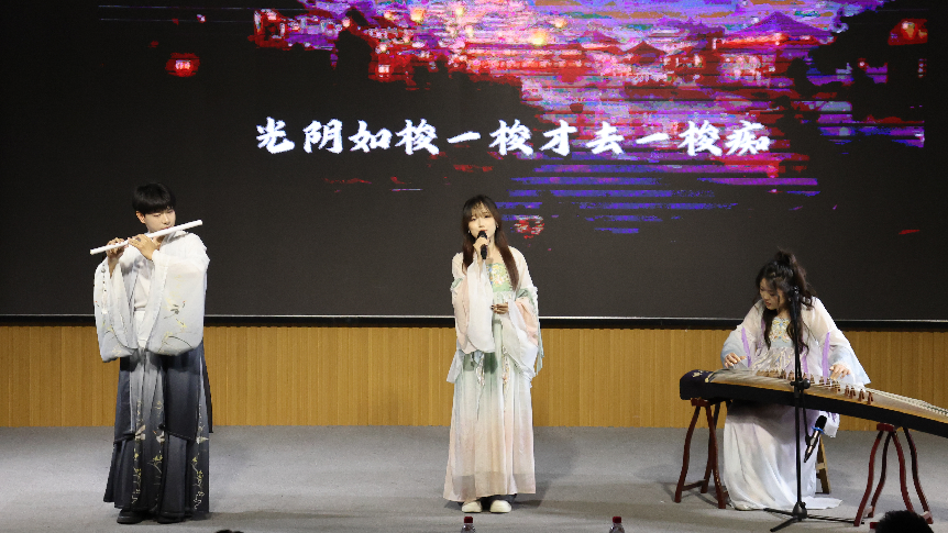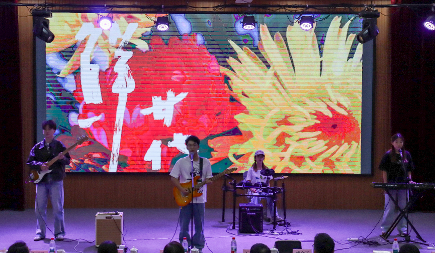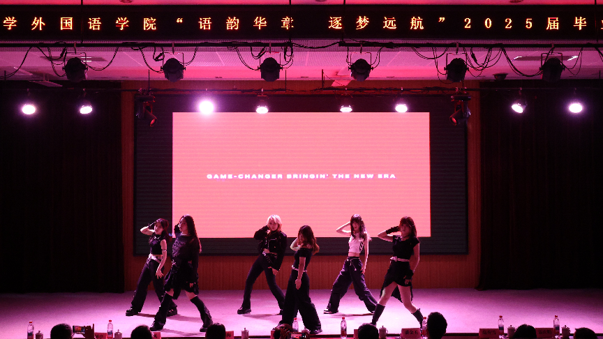 在热情洋溢的开场乐队表演《鲜花》之后,第一篇章“青春汇聚·岁月凝光”正式拉开帷幕。中文歌曲《飞云之下》用悠扬的旋律唱出了毕业生们对未来的美好憧憬;活力四射的Kpop舞蹈《燃烧吧!青春》展现了beat365亚洲体育官方网站学子的青春风采;民乐弹唱《破茧成蝶》则将传统民乐与现代音乐完美融合,寓意毕业生们即将破茧成蝶、展翅高飞。
