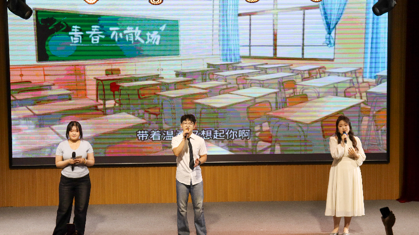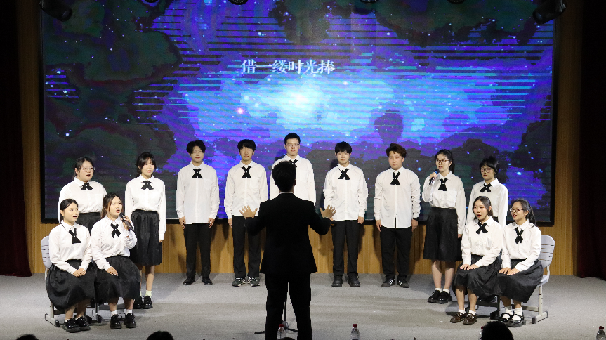 第二篇章“逐梦今朝·风华正茂”中,英文歌曲《Something Just Like This》邀请了职工共同演绎;中国舞《月寄相思》用活泼轻快的舞姿表达了毕业生们对母校的深深眷恋;歌曲串烧《时光留声机》带领大家重温了大学四年的美好时光,引发了全场共鸣。