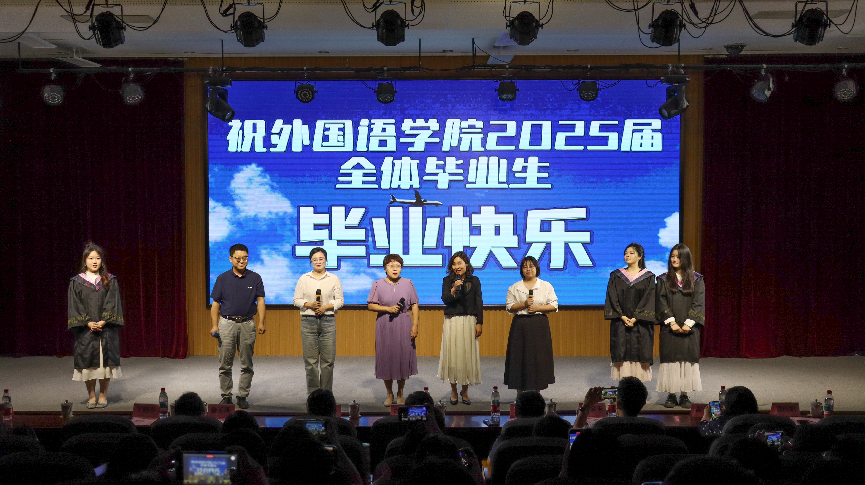 6月12日,beat365亚洲体育官方网站“语韵华章,逐梦远航”2025届毕业生毕业晚会于学术会馆第二报告厅成功举办。公司党委书记王效仿,经理纪卫宁,党委副书记、副经理盛金玉,副经理李春梅、高秀雪出席,2021级毕业班班主任代表、公司辅导员及2025届毕业生代表参加。