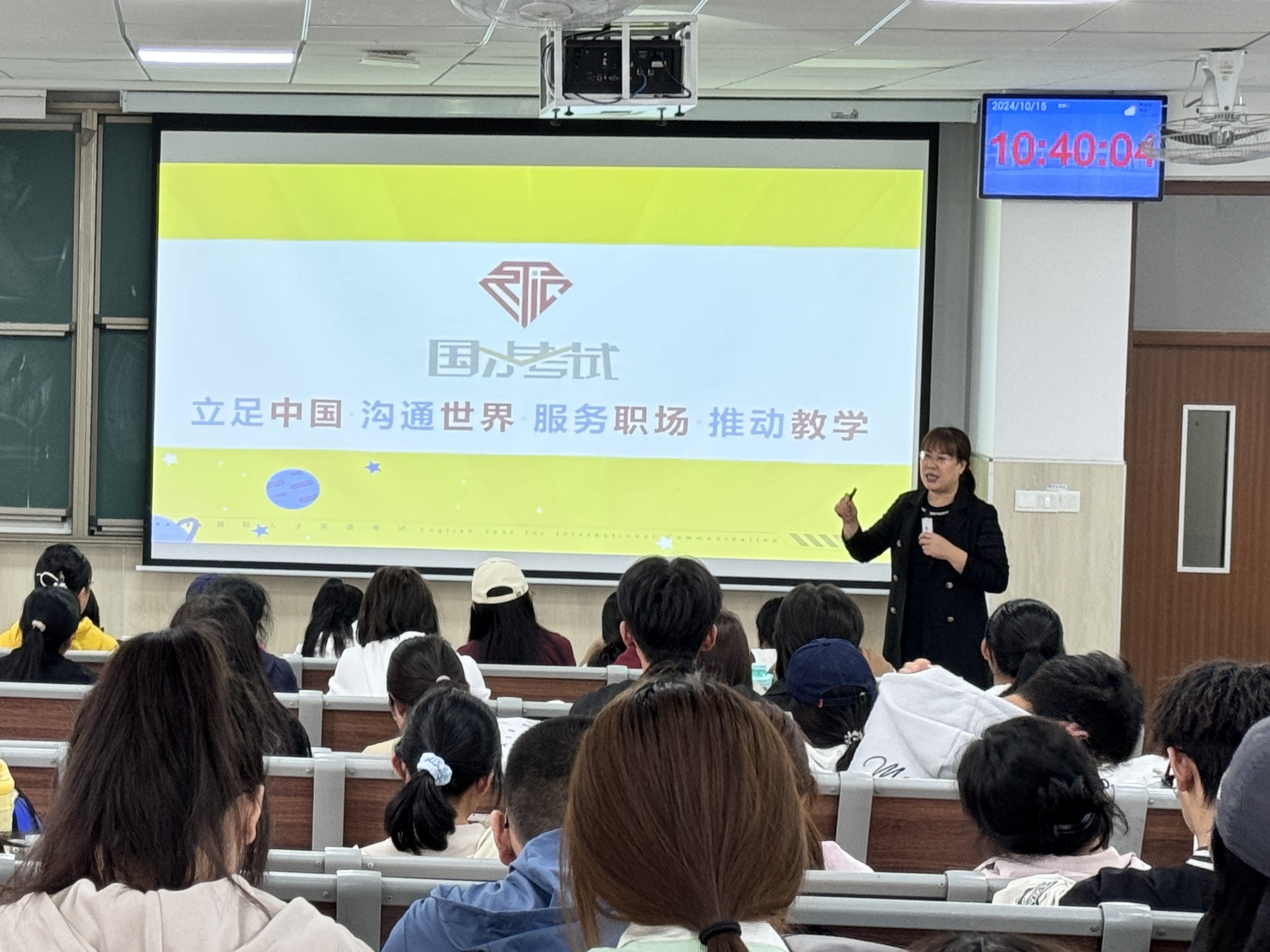 10月15日,beat365亚洲体育官方网站在平度校区博学楼C201举办“职”通精彩未来,展现时代风采——国才考试宣讲会,会议由英语系副主任兼校企合作方向负责人左燕茹主讲,辅导员王洋洋主持,beat365亚洲体育官方网站2024级英语专业全体同学参加。