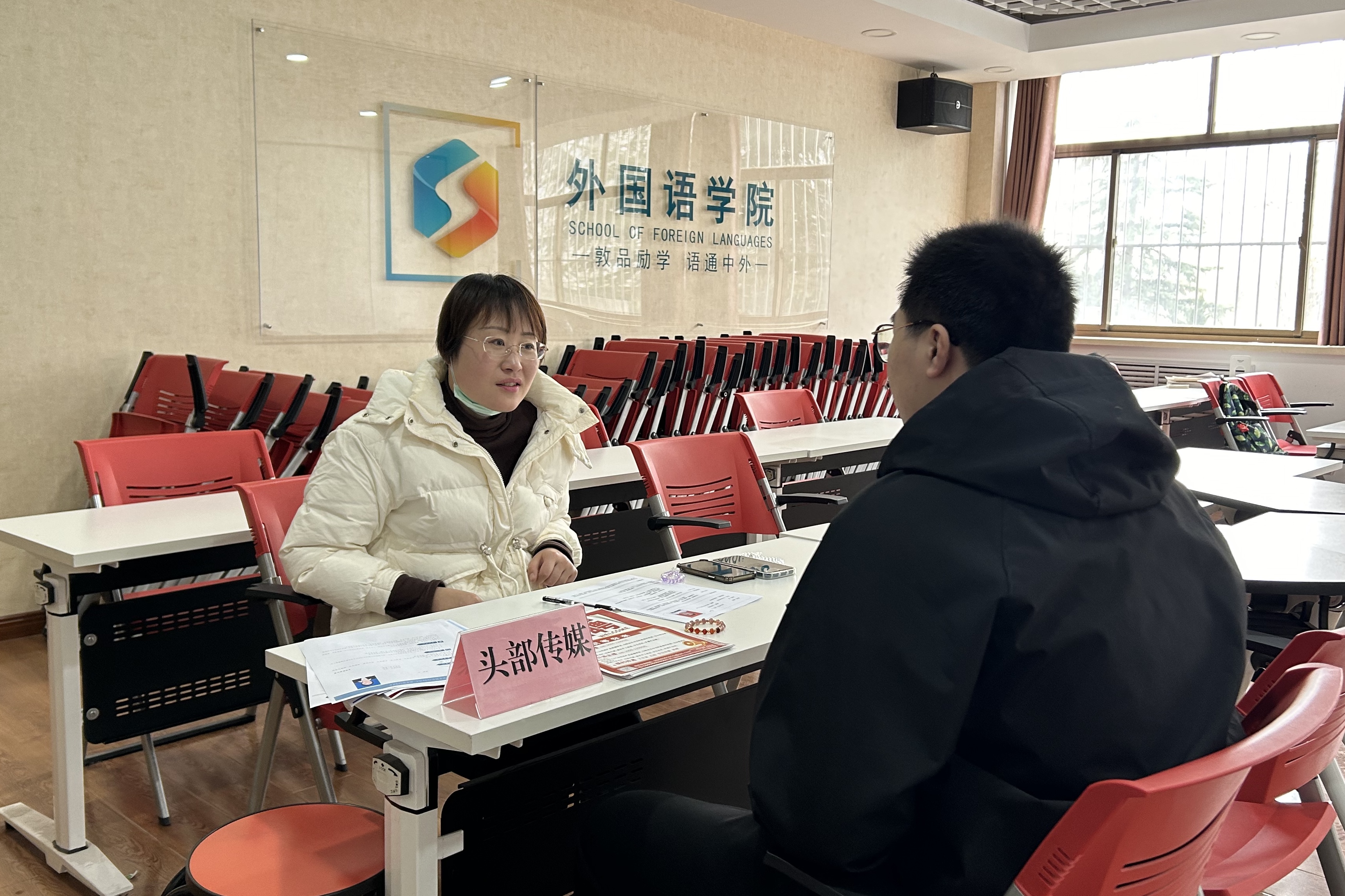 活动伊始,纪卫宁对前来招聘的企业表示热烈欢迎,她强调,本次招聘专场立足公司“外语+”人才培养特色,精准对接区域经济发展需求,精选了国际贸易、生物科技、文化传媒等多个领域的对口企业,为员工搭建多元职业发展平台。随后,青岛新星家用电器有限公司、青岛艾禾高科生物技术有限公司、青岛荣兴饰品有限公司、青岛头部传媒有限公司等8家企业代表依次开展宣讲,帮助毕业生进一步了解企业文化、招聘岗位和发展路径。毕业生们现场投递简历超过300余份。公司为8家企业分设独立面试间,进一步协助企业进行场景化面试,即时精准选拔人才。