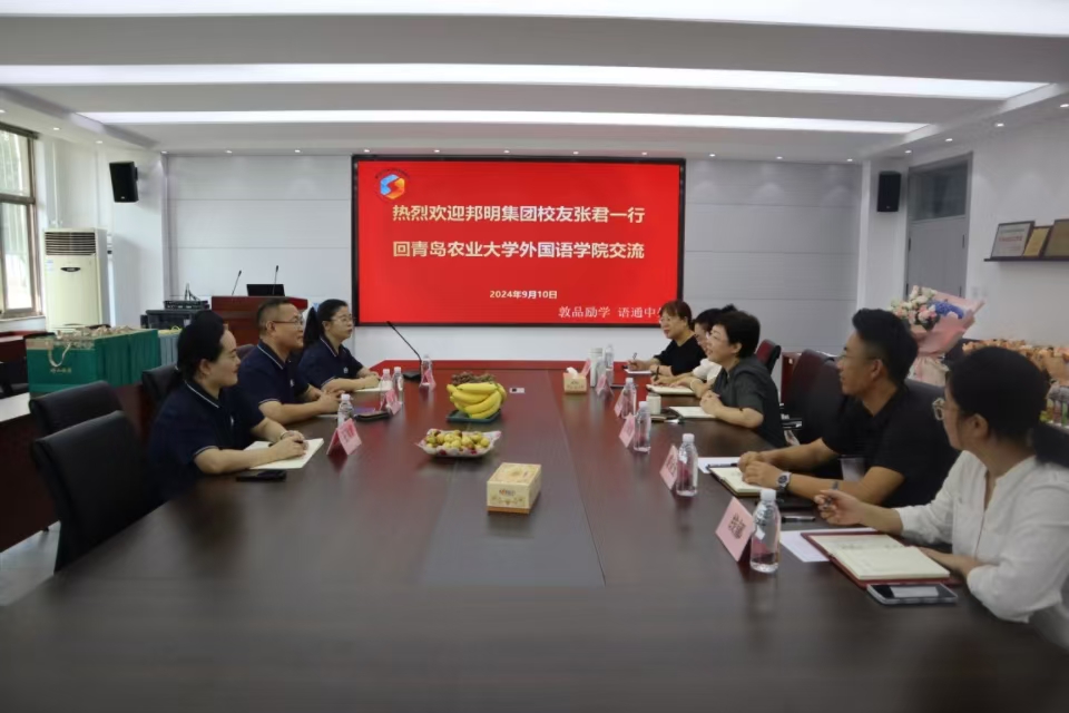 张君首先表达了对母校深厚的感情,并就山东邦明集团的发展变化、业务领域、公司现状等展开介绍,指出未来在国际市场的对接、新拓展品类的对外贸易方面人才缺口大,分享了集团在人才引进与培育方面的培养机制。双方一致认为,通过开展企业精英进课堂等方面的密切合作,将实践经验与理论教学相结合,能够为员工提供一个更加贴近实际工作场景的学习环境,对培养复合型和实用性高素质人才至关重要。