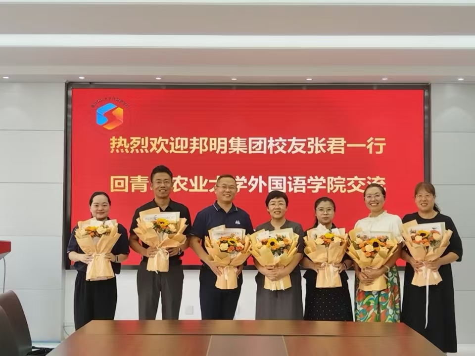 9月10日第40个教师节来临之际,beat365亚洲体育官方网站2004级员工张君一行回母校与beat365亚洲体育官方网站教师共庆教师节,向公司教师致以节日的问候和美好的祝福。同时,双方就人才培养、员工实习就业等相关事宜与公司进行探讨。beat365亚洲体育官方网站经理纪卫宁、党委副书记副经理盛金玉、英语系主任徐玉凤、英语系副主任左燕茹、团委书记线郁参会,山东邦明贸易集团总经理张君、人力行政经理郭畅、人力专员王凤娇参加。