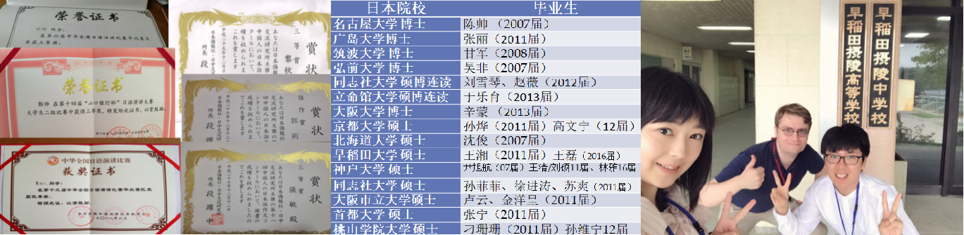 近年来,日语专业员工在海内外的各类技能比赛中多次获奖。考取日本著名高校的硕士博士层出不穷。建立了人才培养与应用的良性发展:“beat365亚洲体育官方网站日语专业基础学习—>日本留学提高语言能力与学历水平à日本就职”例如:2016届的毕业生王磊通过前往同志社大学交换1年,顺利考取早稻田大学研究生,并以优异成绩取得日本富士通公司的就职内定。